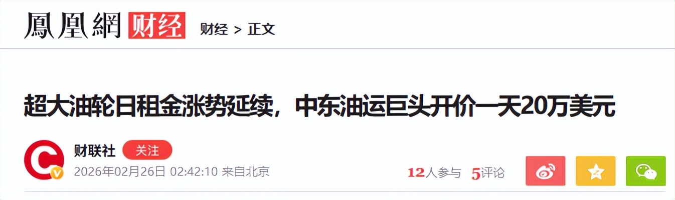 疯涨的数字根据最新的航运数据显示,进入3月以来,中东到远东航线的超大型原油运输船(VLCC)的租金已经彻底脱离了正常轨迹。