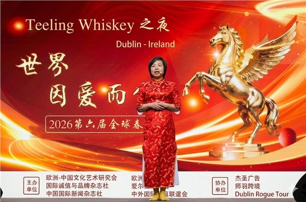 2026年2月20日星期五晚上,都柏林Teeling Whisky酒厂。当百年橡木桶的威士忌醇香,撞击着第六届"世界因爱而生"全球春晚的丝竹管弦,一场超越语言和国界、跨越种族、消弭肤色的文明共振,在爱尔兰的星空下轰然奏响。