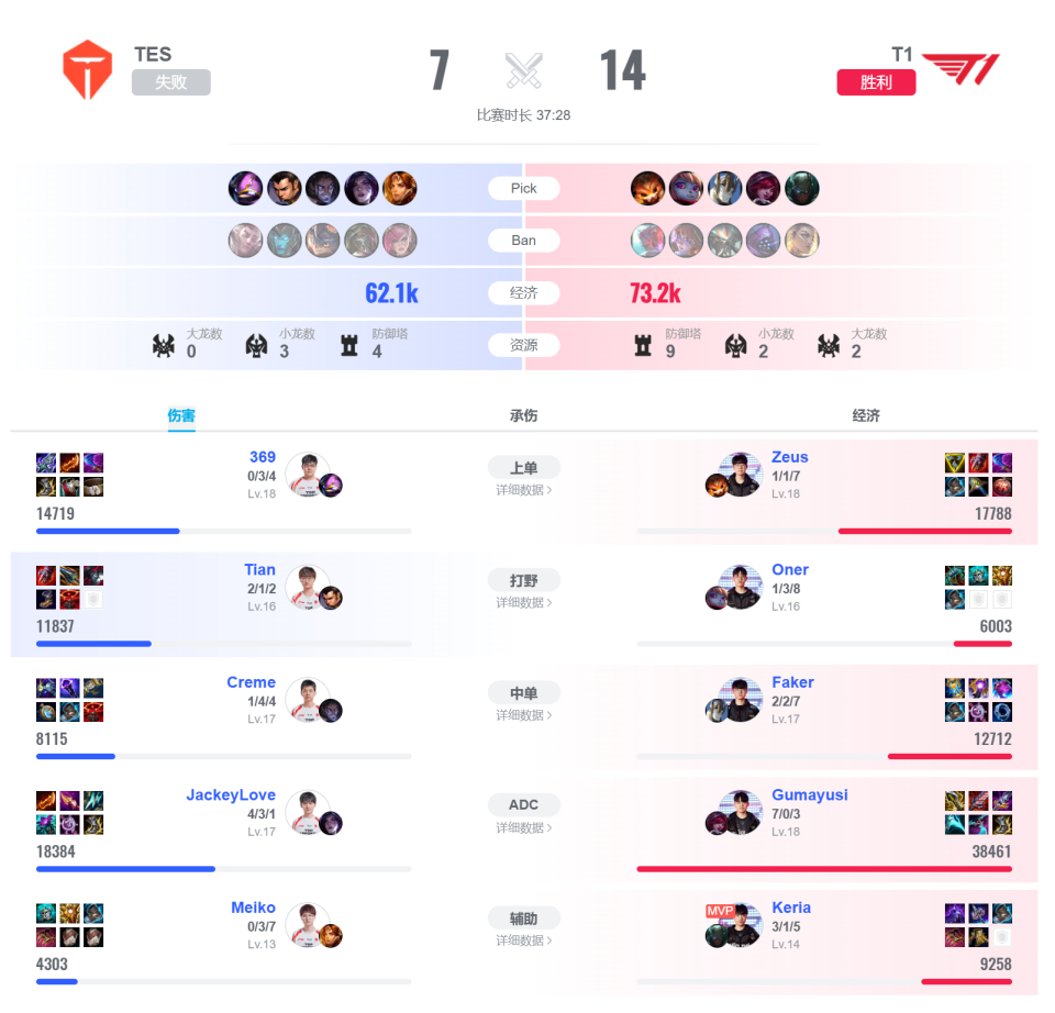 在此前LPL也经历过很多次BO5的零封,最著名的就是TES两度面对T1都被零封,但面对的是S赛开启“全盛”状态的T1,一次是ZOFGK一次是DOFGK。S14全球总决赛TES面对T1,场均坚持了30分钟以上(31分钟/33分钟/37分钟)。S15全球总决赛TES面对T1,场均坚持了28分钟以上(30分钟/27分钟/28分钟)。那时候的TES对线不差,小规模团战也可以碰一碰,但差在团战和运营的牵扯,突然就发现跟对手装备等级差了很多。