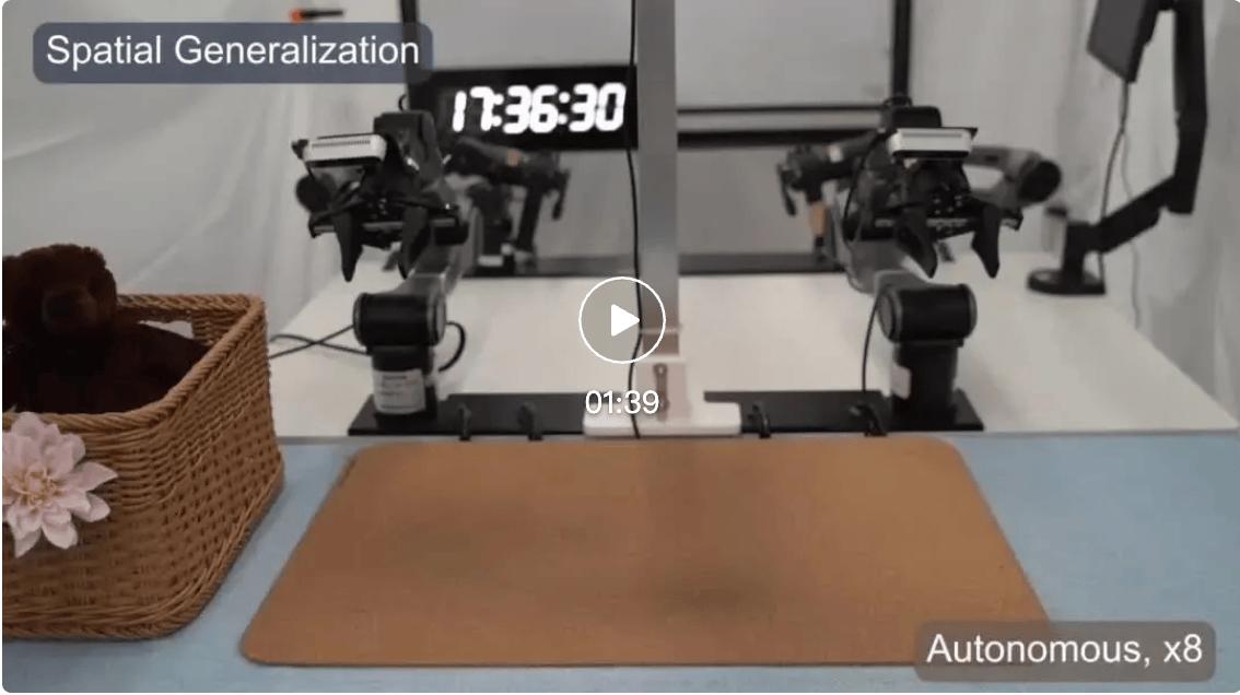 位置泛化:即使被操纵物体的摆放位置发生变化(如折叠衣服、书包的位置偏移),模型仍能精准完成操作,无需重新训练。