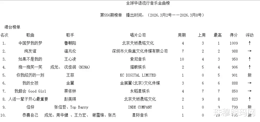 在最新揭晓的第556期榜单中,鲁朝阳的代表作《中国梦 我的梦》以港台地区榜单第一名的成绩引发关注。这首发行于2017年的歌曲,以激昂的旋律和铿锵的歌词诠释了“个人梦想与国家复兴同频共振”的主题,上线后迅速成为企事业单位、校园活动的热门选曲,更被海外华人社团誉为“新时代的文化纽带”。此次登顶港台榜单,进一步印证了主旋律音乐在年轻群体中的破圈影响力。