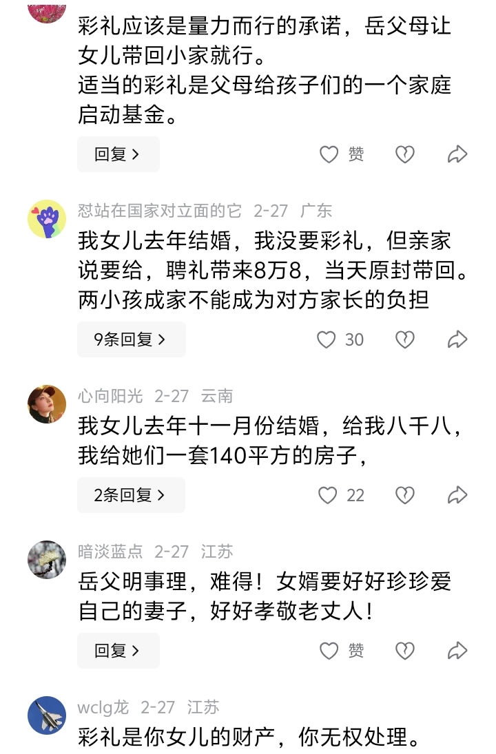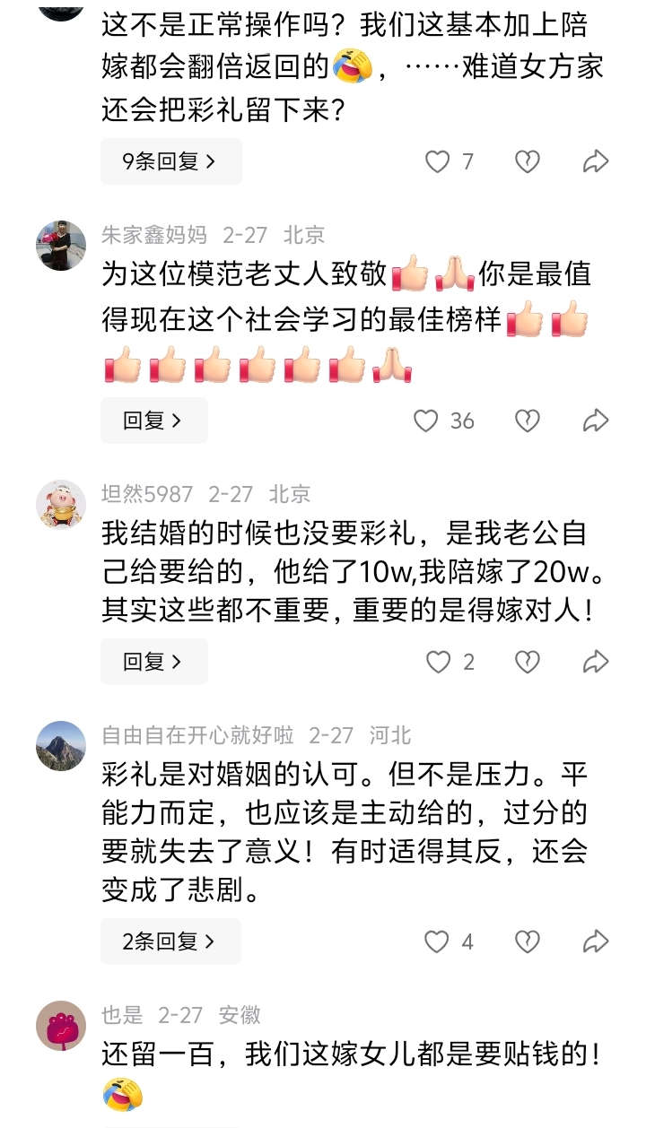 从下列网友的留言不难看出,在彩礼这上面始终是存在两面派的。
