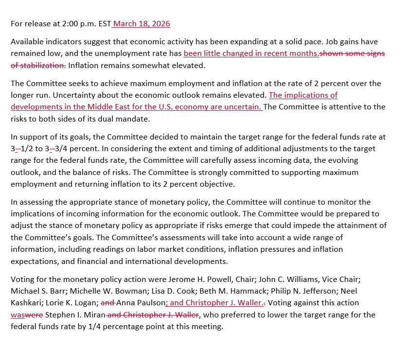 凌晨2点,美联储联邦公开市场委员会(FOMC)发布了最新的利率决议,与市场预期一致,将联邦基金利率目标区间维持在3.5%至3.75%不变,也是连续第二次会议按兵不动。