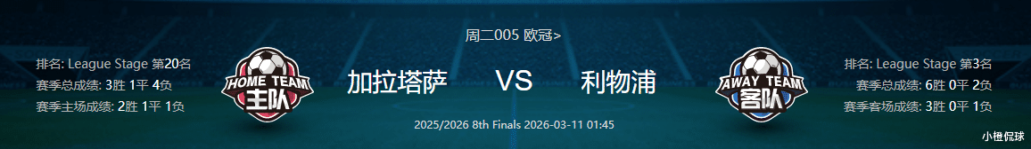 看法:这轮淘汰赛是两回合比赛,加拉塔萨雷有7名球员再吃牌就要停赛,土耳其球队的地狱主场必须把握住优势,否则作客安菲尔德将会更加难踢,因此本轮一定会给利物浦球员上对抗强度,球迷最高分贝可以超过120,这是他们加持因素之一,而且在打尤文图斯的客场比赛中,因为他们的球迷有投掷杂物、燃放烟火等扰乱赛场秩序行为,次回合在安菲尔德的比赛不允许有客队球迷助威,那么显然主场如果落后的话,客场翻盘概率更低,而利物浦球员担心受伤、受制于主场球迷氛围等因素,作客发挥将受到不小的影响,数据层面来看,只能说中规中矩,此役个人看好首回合加拉塔萨雷不败。