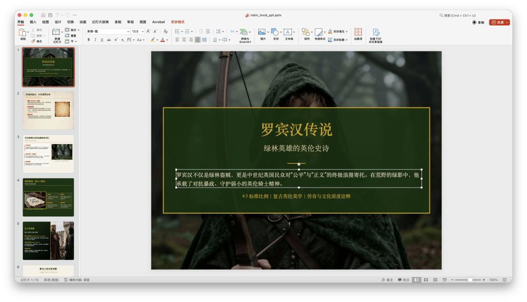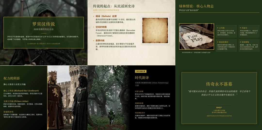 帮我做一份关于罗宾汉(Robin Hood)的介绍 PPT,包含历史背景、传奇故事和文化影响。