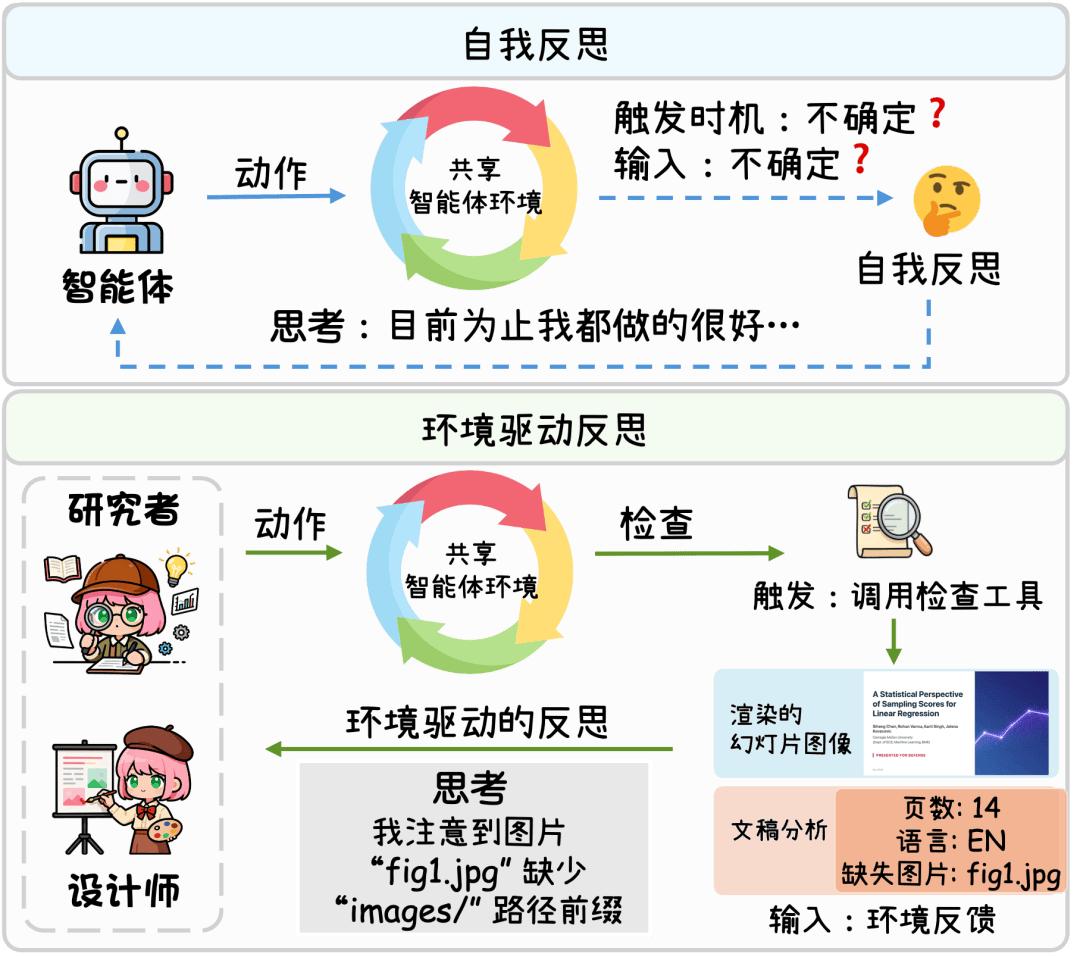 解决:环境感知反思机制(Environment-Grounded Reflection),给它加上 “眼睛”。