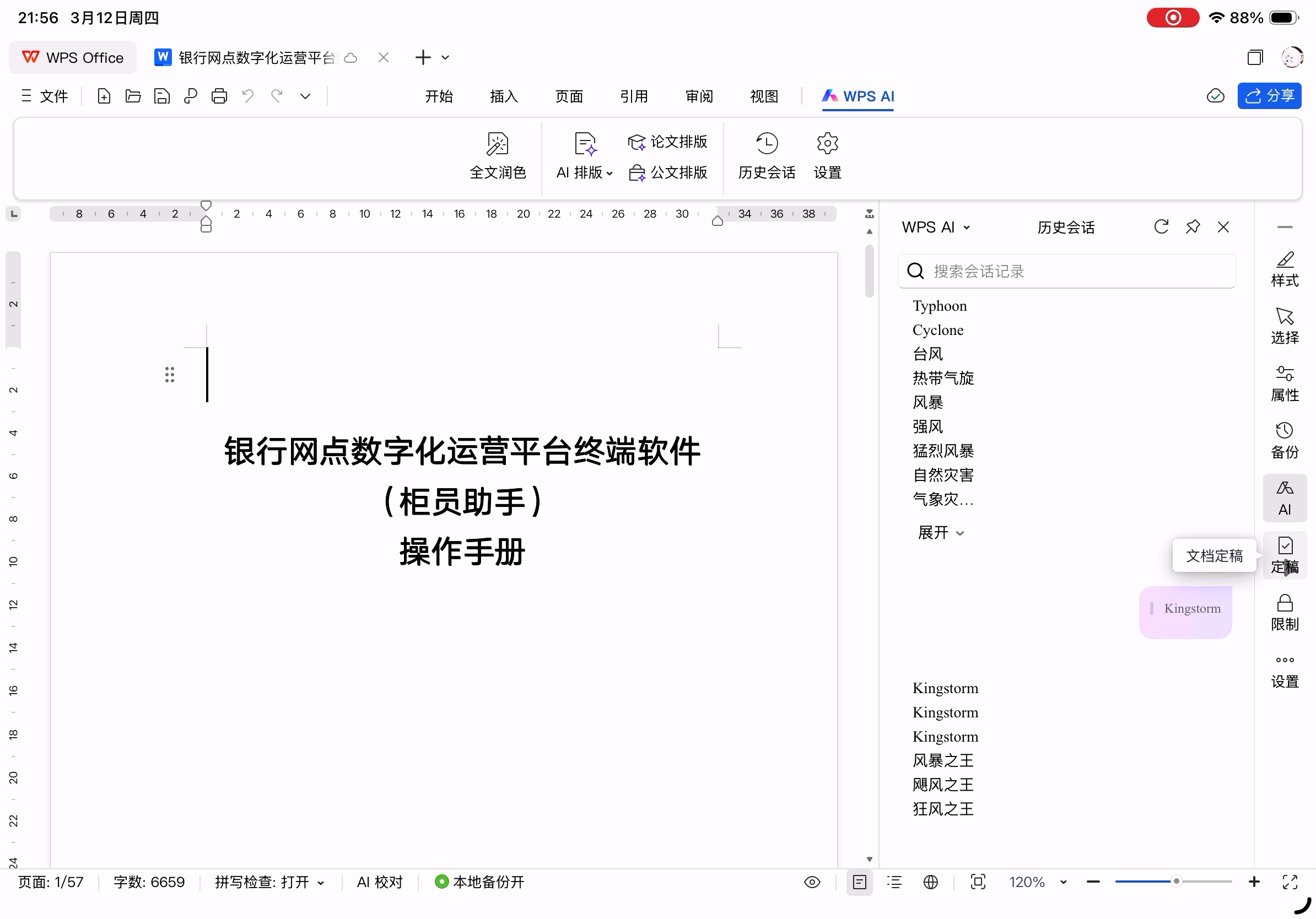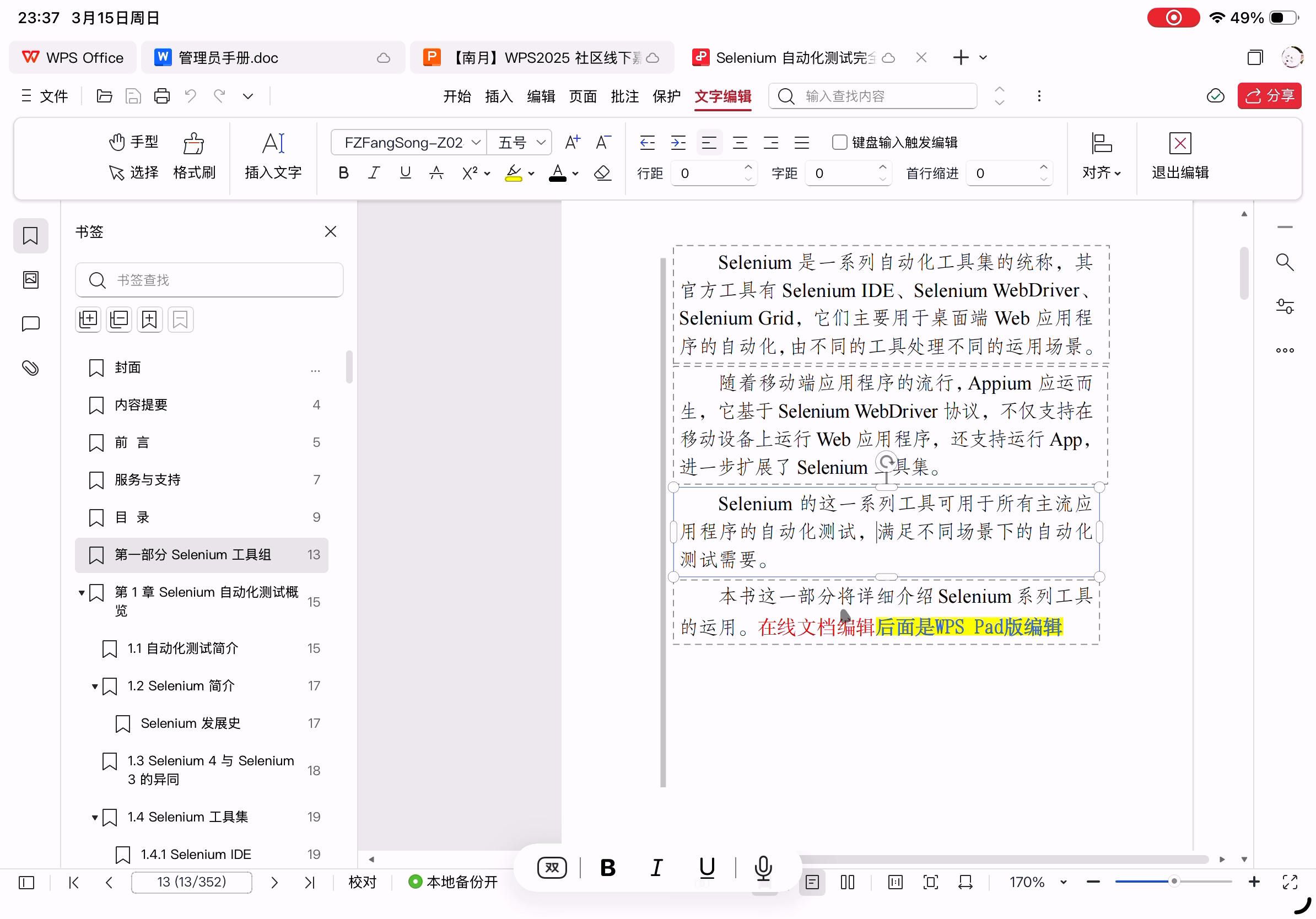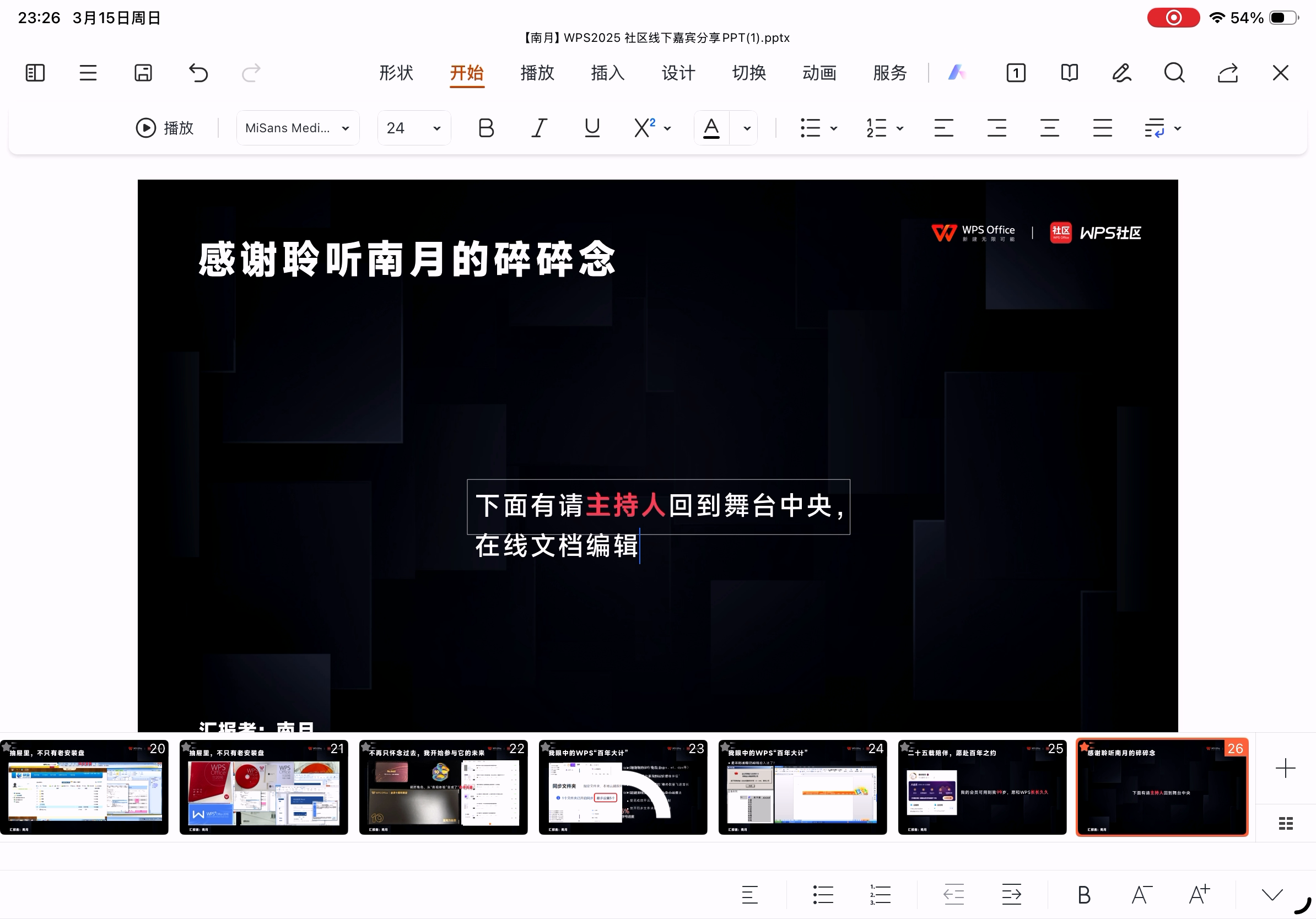 但是,目前的版本而言,还不适合作为主力办公使用,因为高阶功能尚不完善、云字体功能还没有,所以作为应急使用没问题,但是编辑完后在条件允许的情况下最好再去电脑上检查一遍。