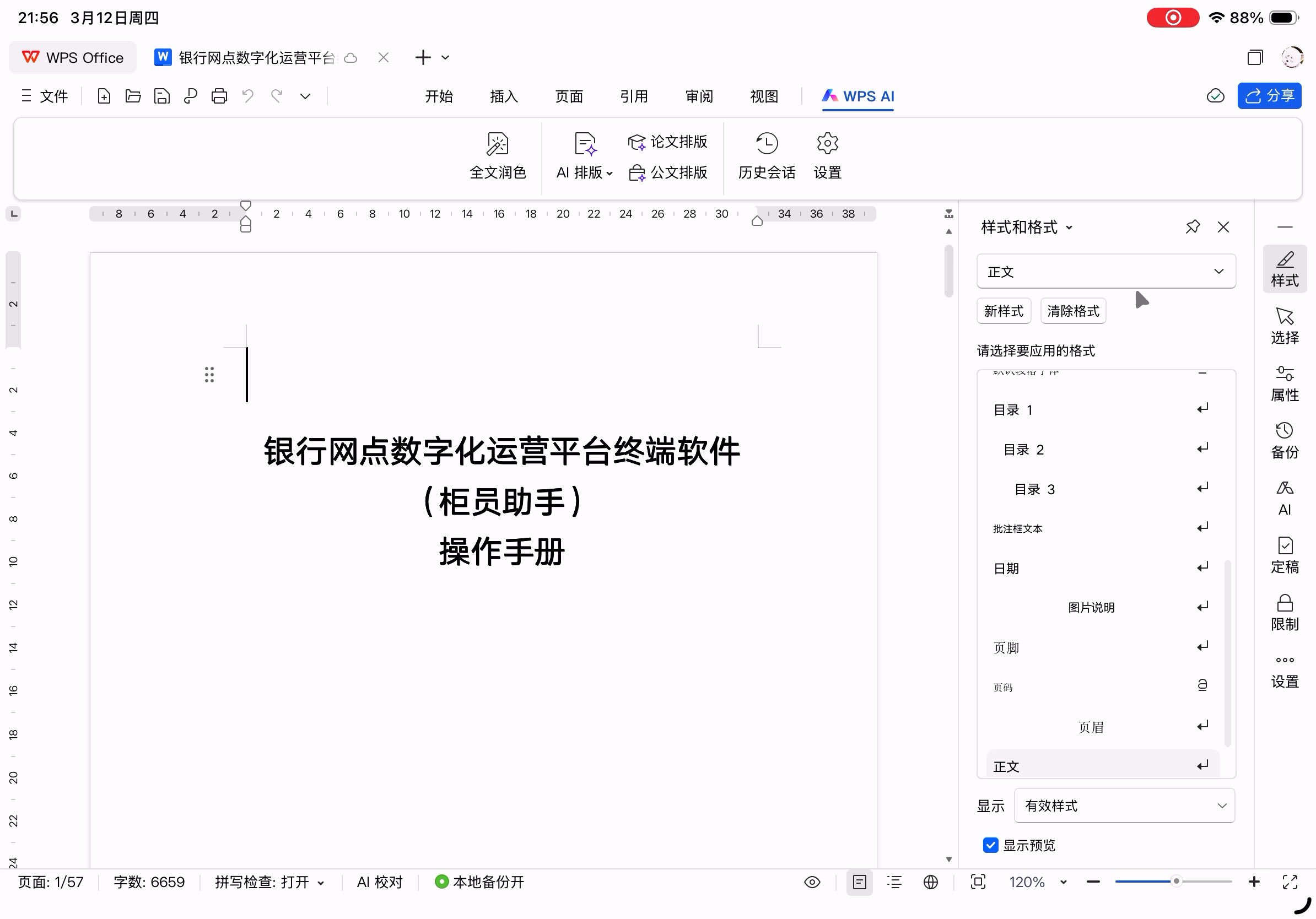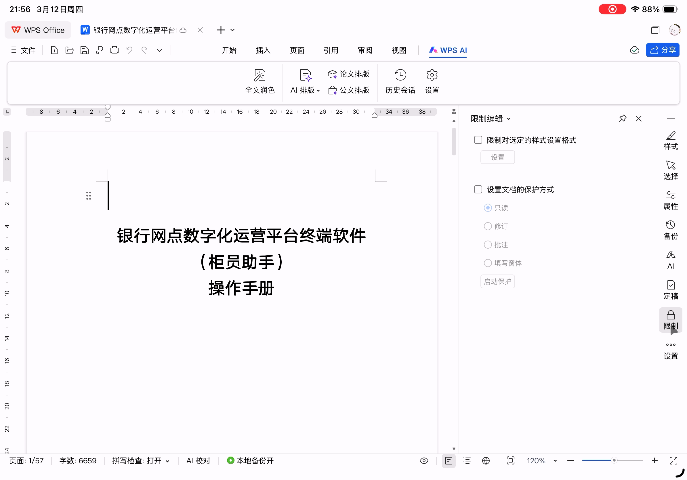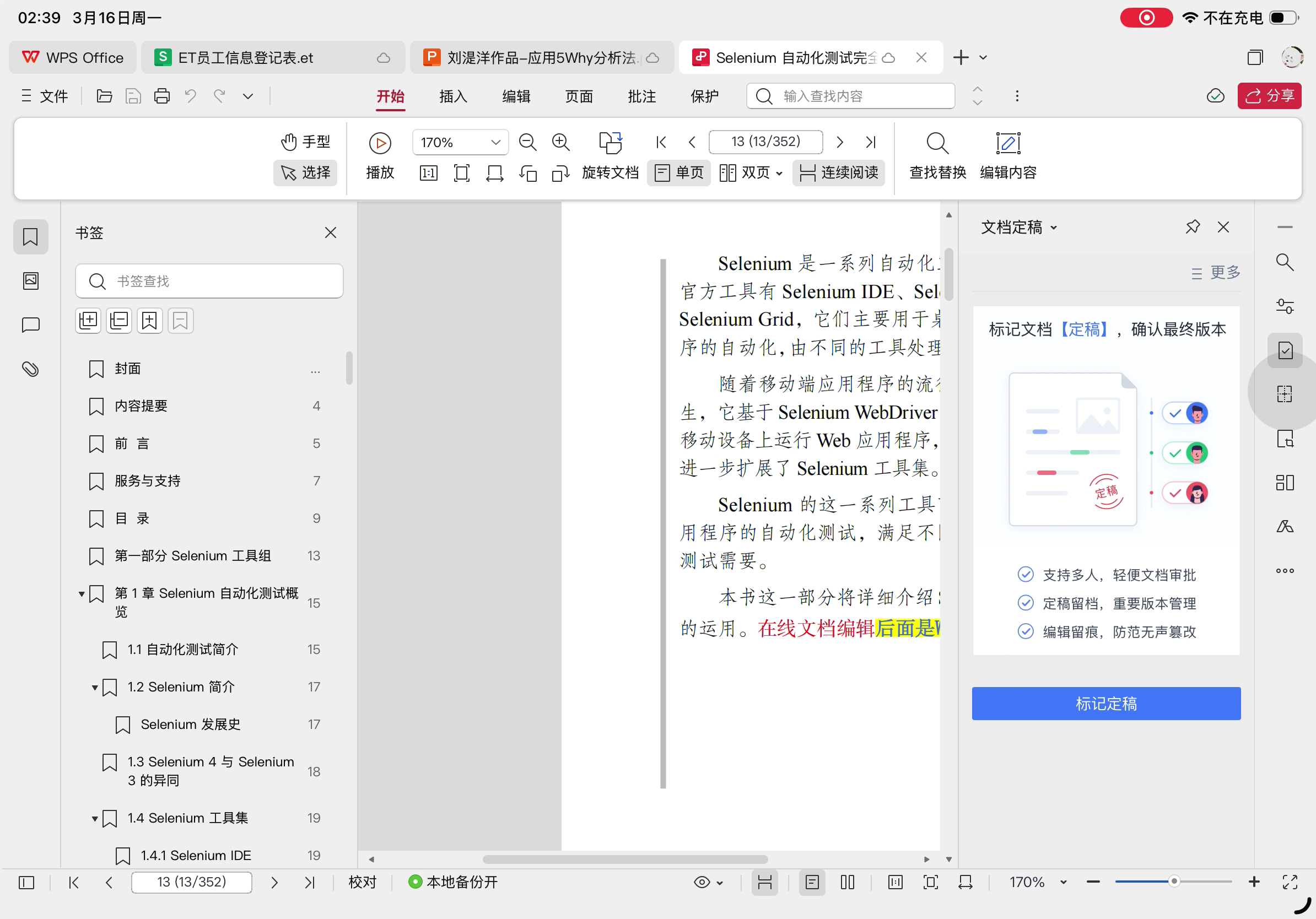 但是,目前的版本而言,还不适合作为主力办公使用,因为高阶功能尚不完善、云字体功能还没有,所以作为应急使用没问题,但是编辑完后在条件允许的情况下最好再去电脑上检查一遍。
