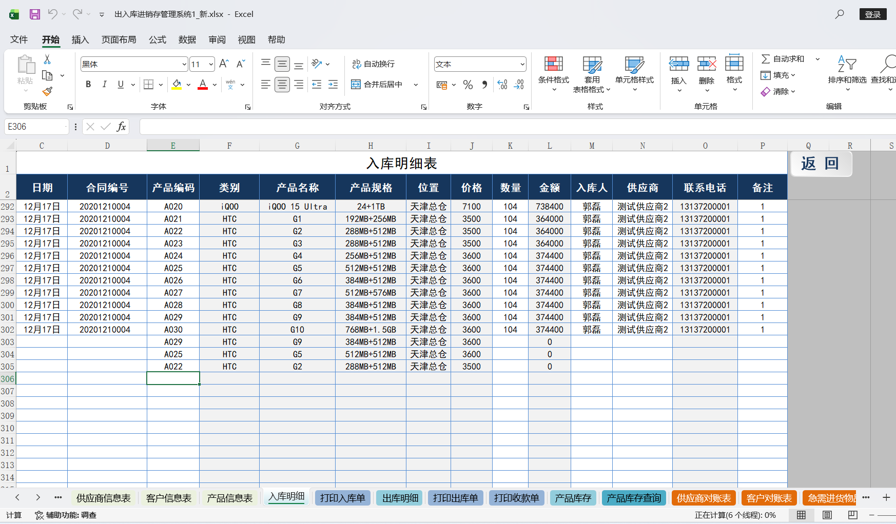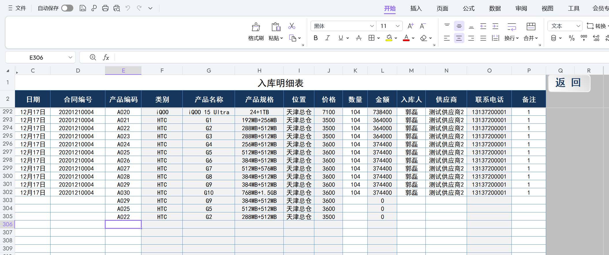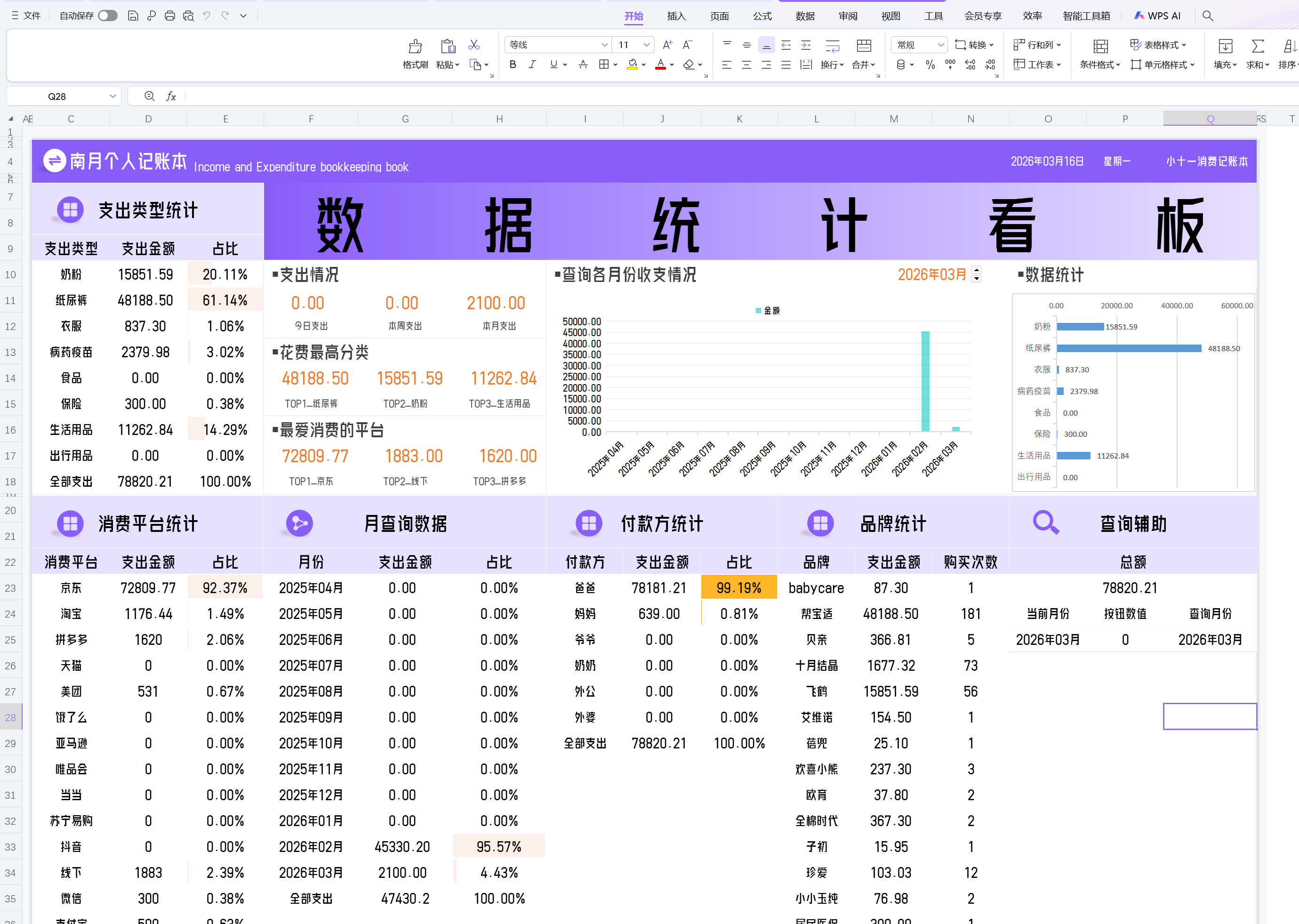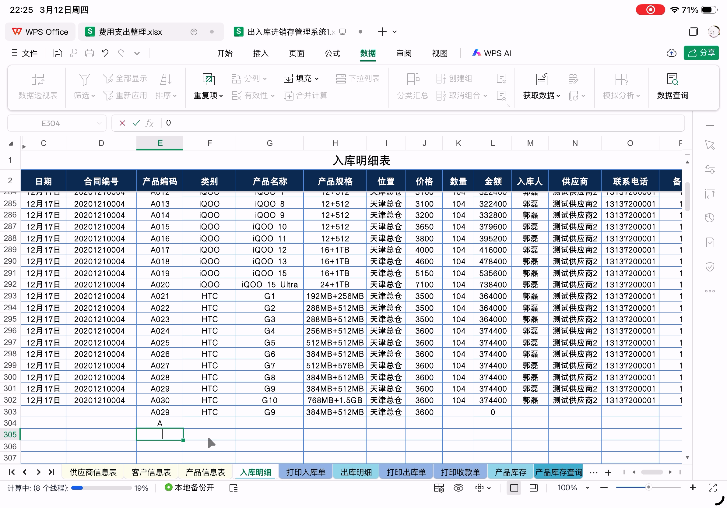 账本表格在PC上WPS中打开的样子,下图为已经在Pad上修改后的版本,数据统计正确。