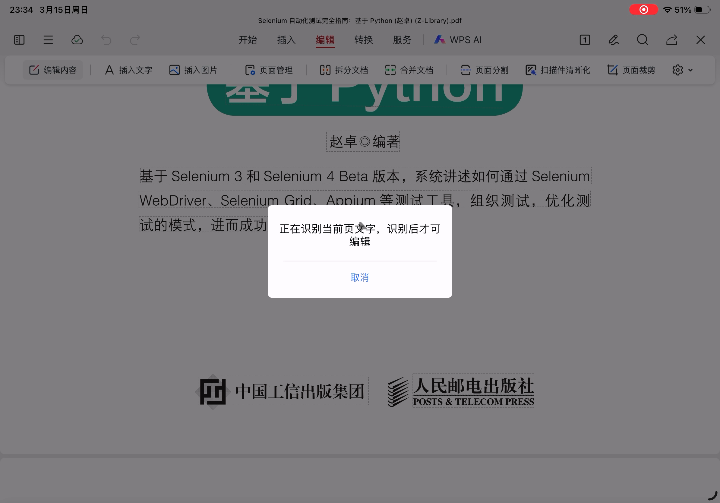 移动端编辑PDF的时候需要先等识别完成。