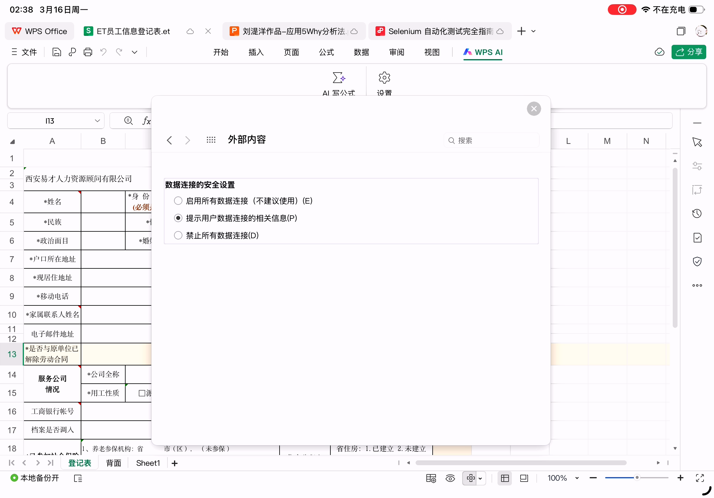 数据正常,但WPS上创建的按钮在Excel上无法点击,这个表格本身是从Windows版上WPS创建的。