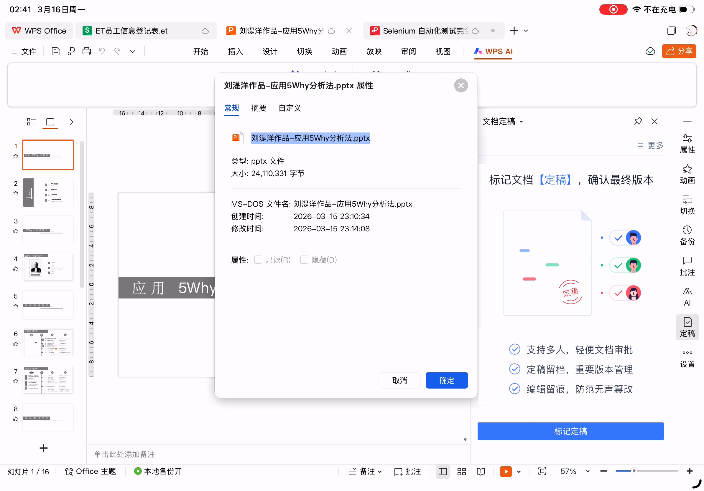 文件属性,文字、表格、演示可编辑的条目相同。