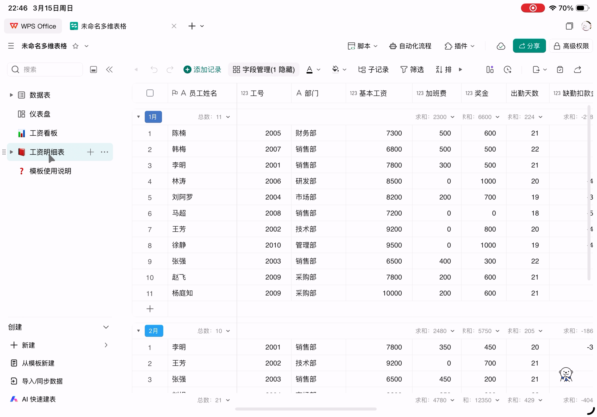 多维表格没问题,基础功能正常使用。