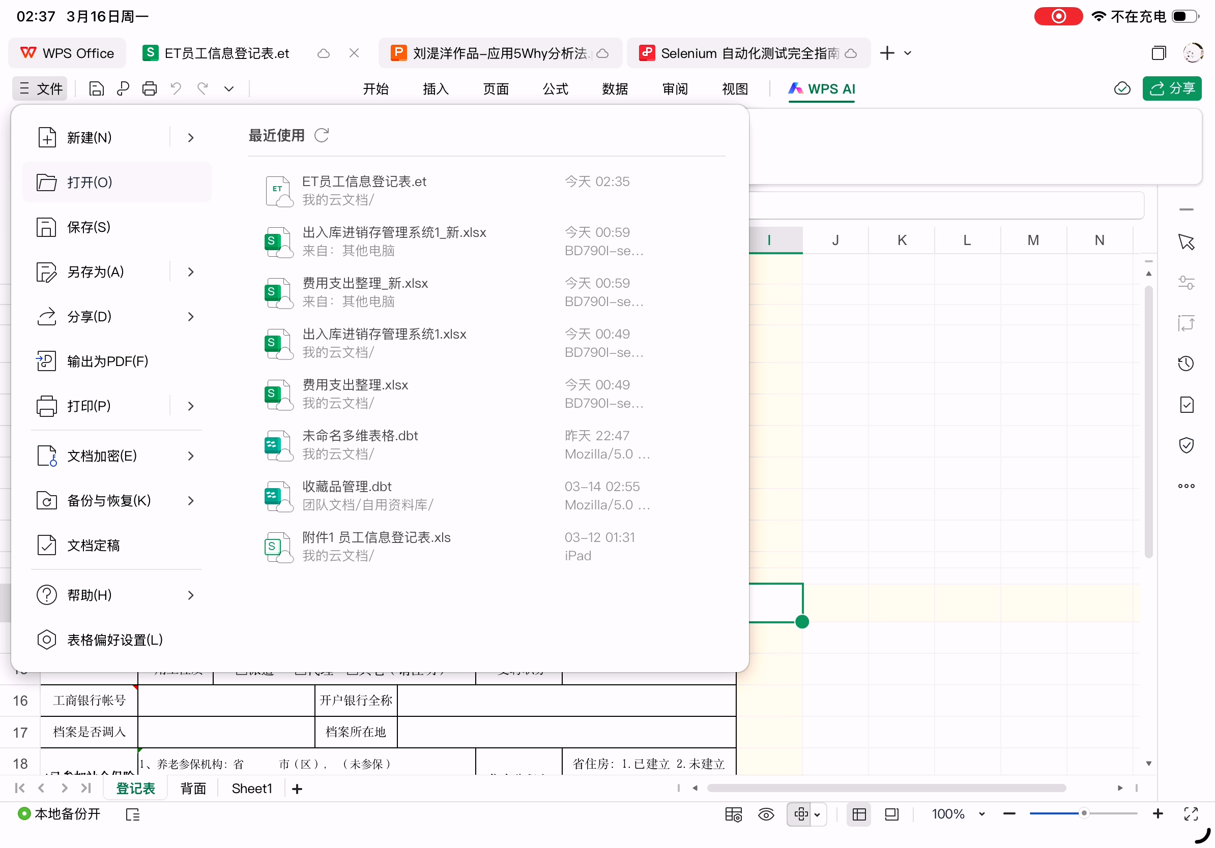 WPS表格(主界面、打开文件效果)