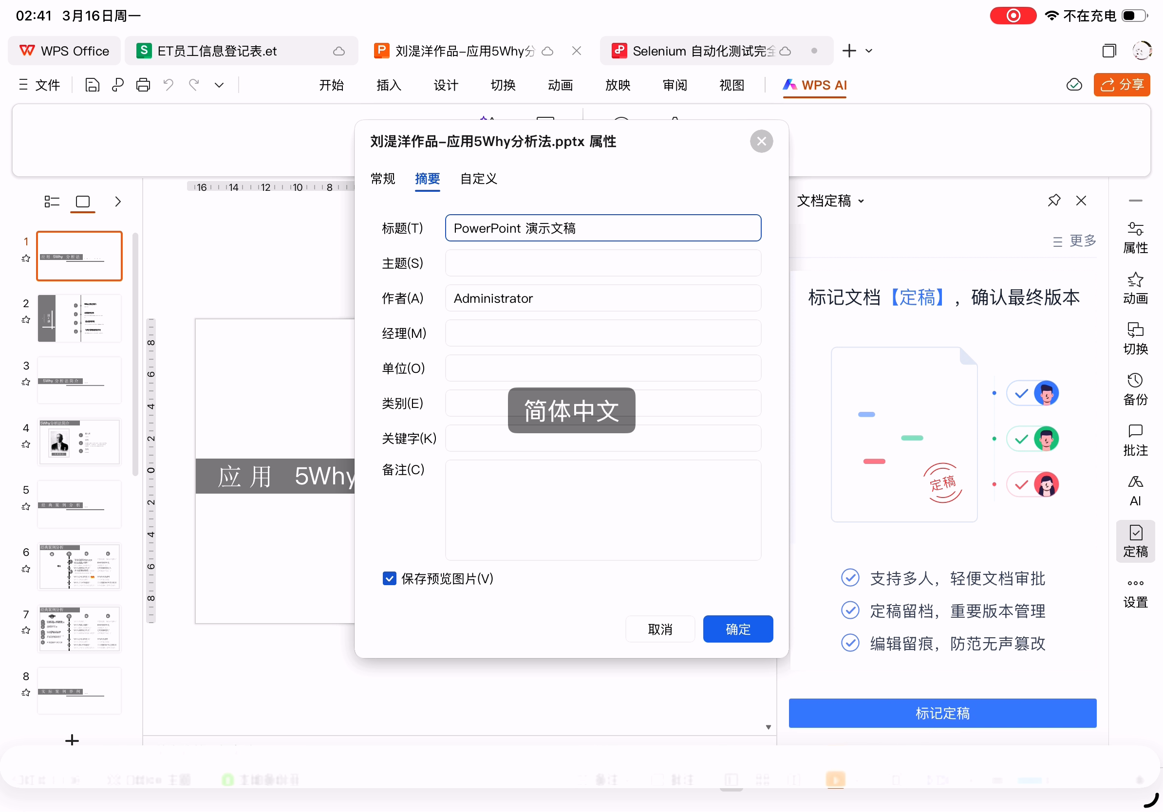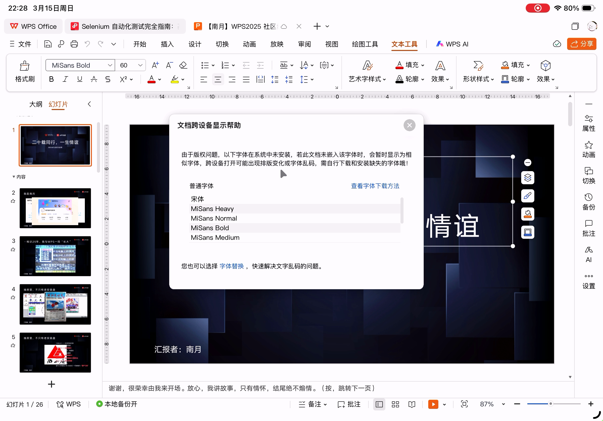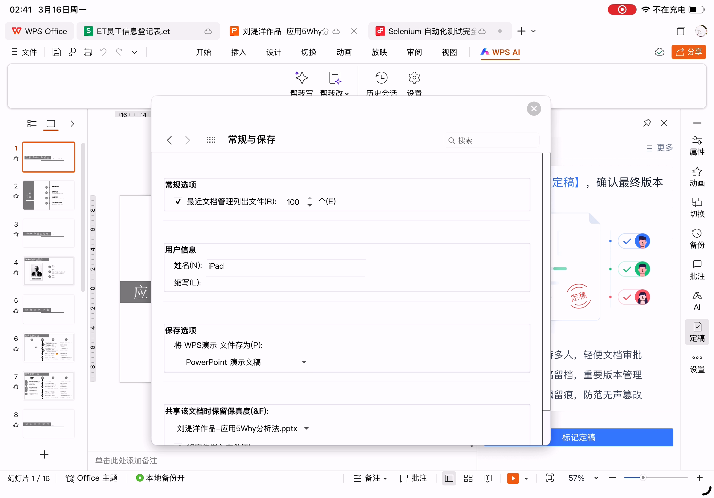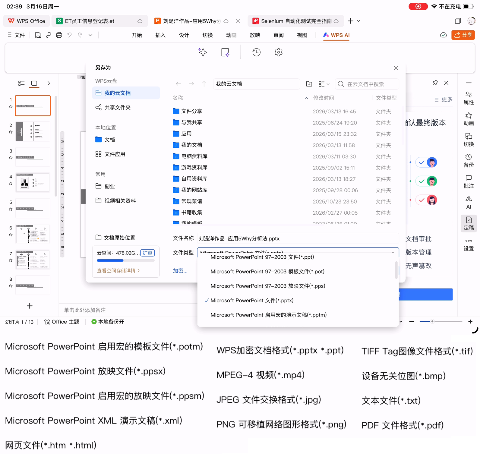 WPS演示保存文件后在PC上的WPS和MS Office打开