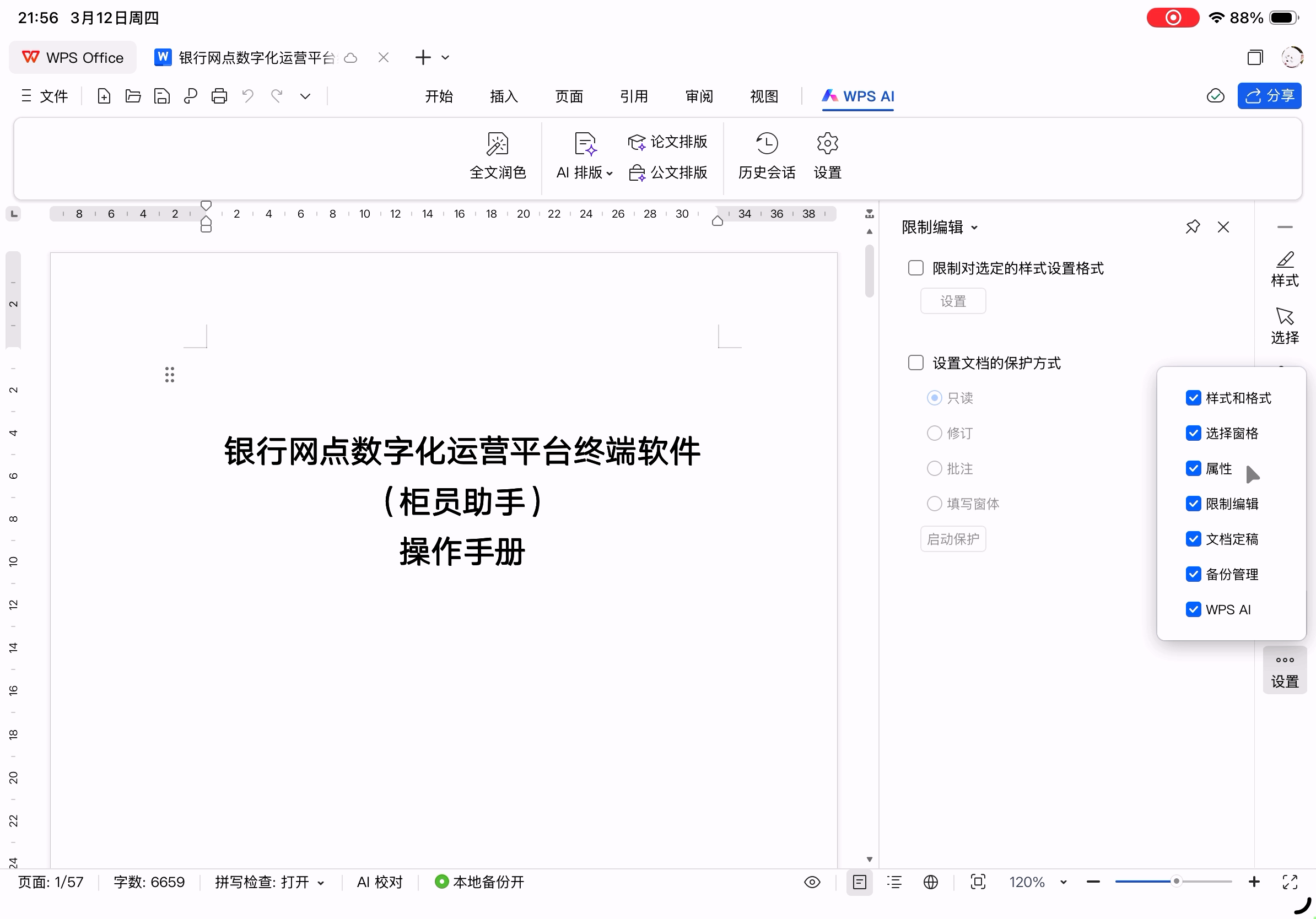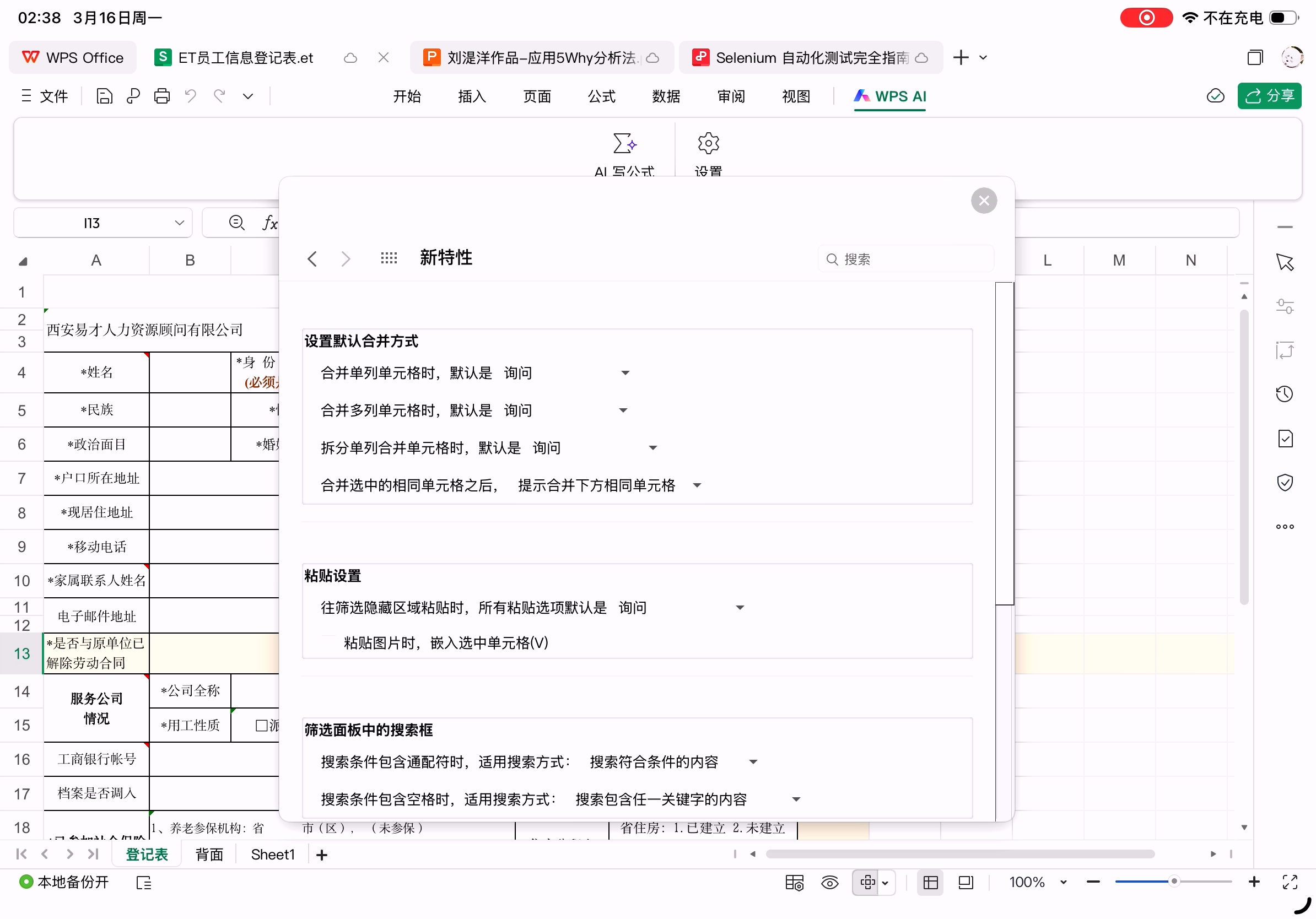 AI菜单和右侧任务窗格,AI少了一大堆,连深度思考都没了。