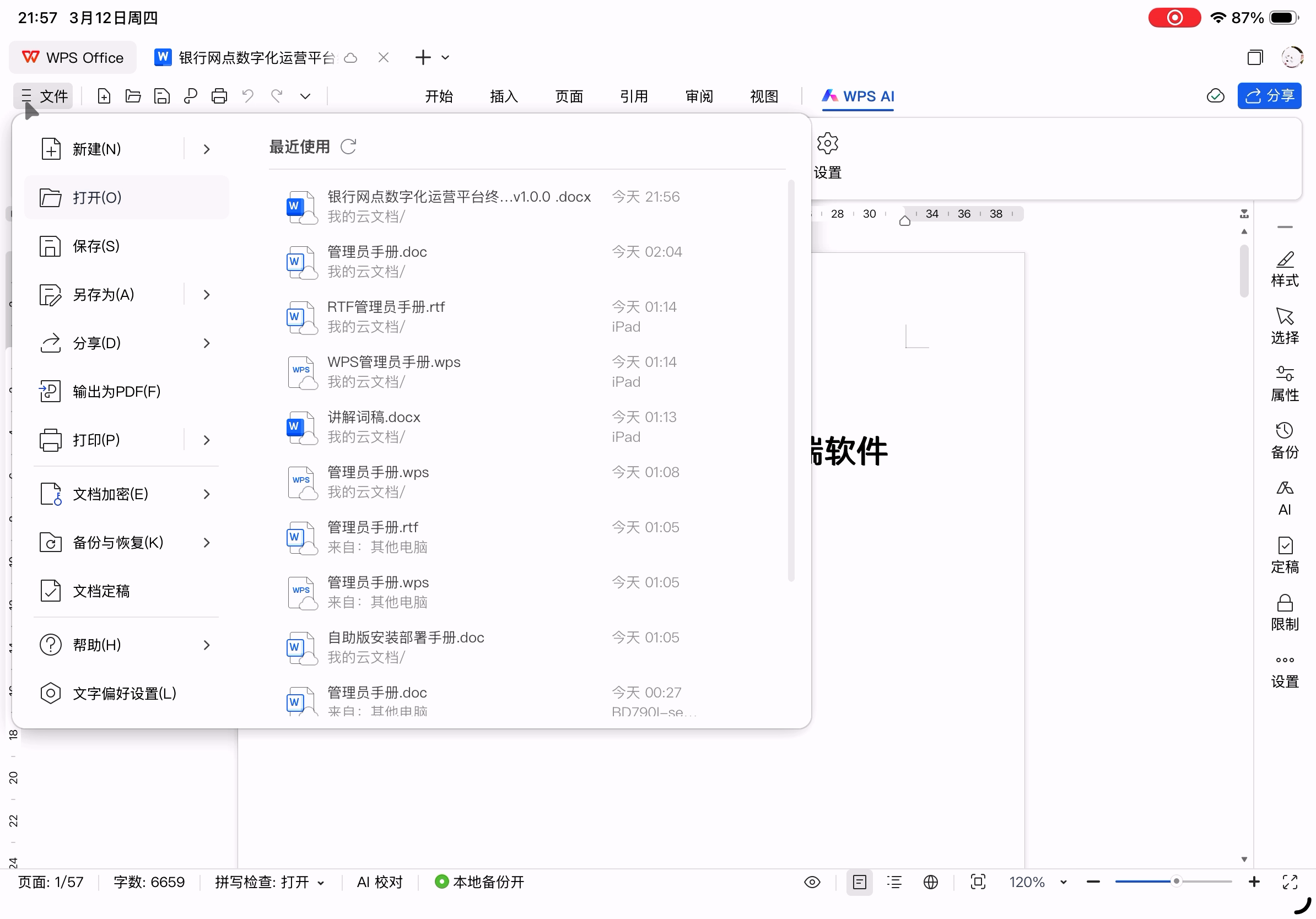 WPS文字(主界面、打开文件效果)