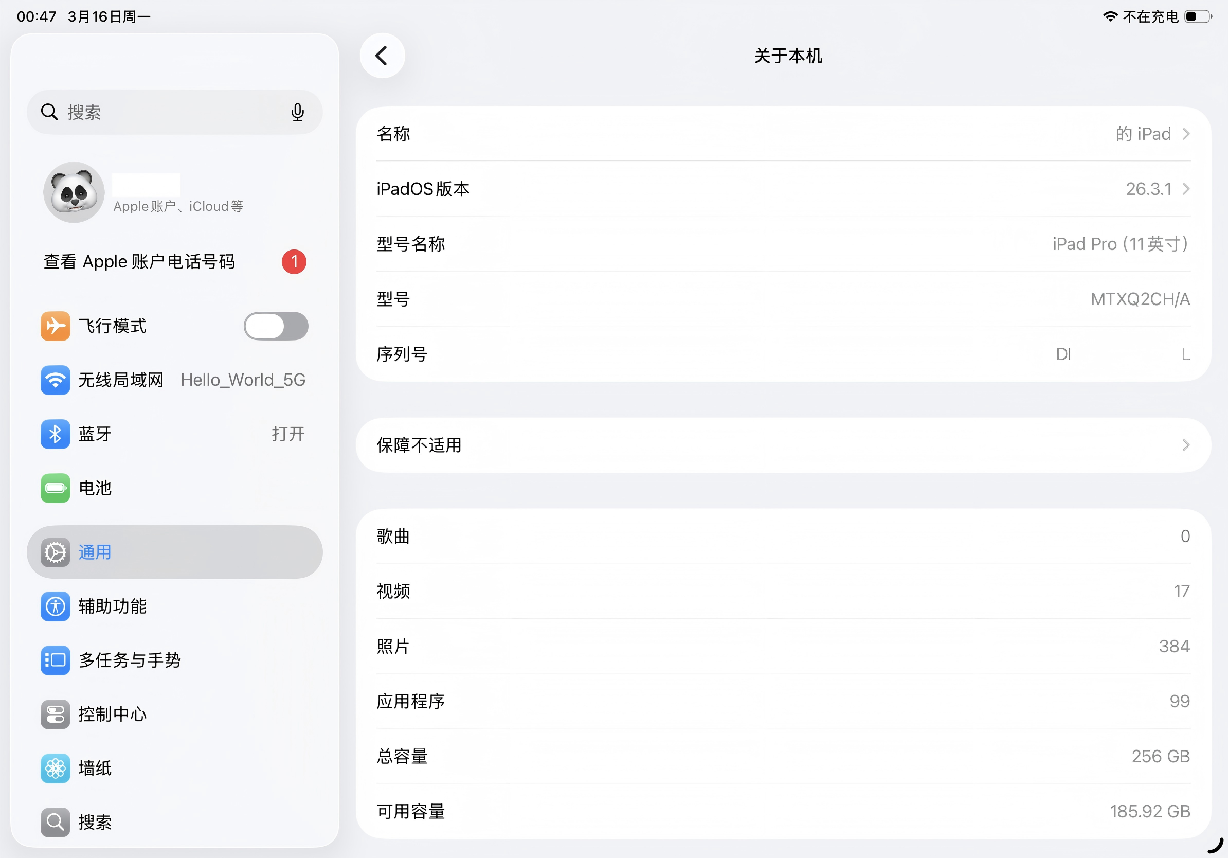 2018款iPad Pro 11,A12X处理器,2388×1668分辨率,4GB+256GB配置。