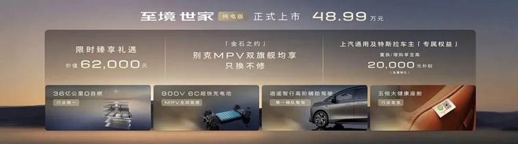 3月17日,备受期待的别克至境世家纯电版正式亮相并公布售价。此次上市的纯电版车型共推出1个配置版本,价格区间48.99万元。同时推出限时五大礼遇,价值6.2万元。作为别克品牌在豪华纯电MPV领域的重要布局,至境世家纯电版凭借其卓越的产品力,一经发布便引发了业界广泛关注。
