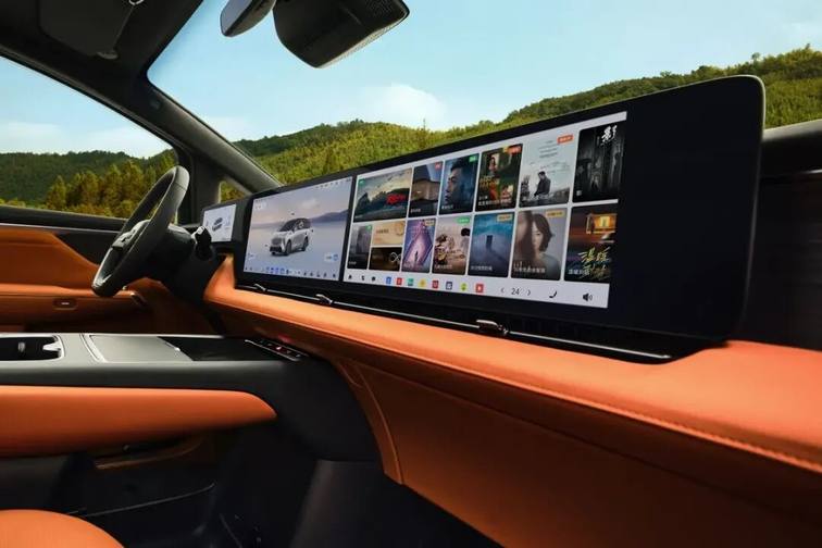 步入车内,简约大气的内饰风格扑面而来,大面积软性材料的包覆营造出浓厚的豪华氛围。最引人注目的当属整个座舱最多可达8块的屏幕配置,包括50英寸AR-HUD抬头显示、10.25英寸仪表盘、双16.3英寸中控与副驾连屏,以及后舱4K画质的21英寸吸顶屏和两块后排5.5英寸管家屏。搭载高通8775芯片后,多屏互动流畅自如,二排OMS摄像头更支持手势控车及乘员状态监测,配合AI大模型语音助手可完成700余项车控指令,科技体验全面升级。