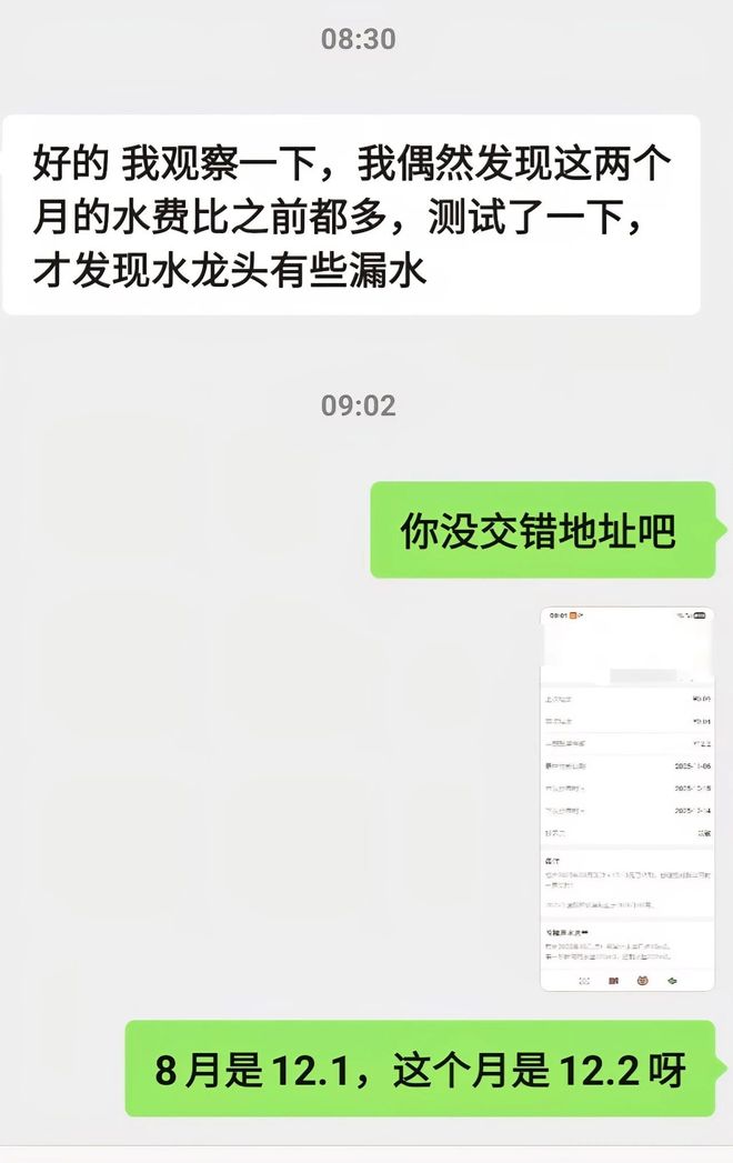 直到她说水龙头漏水,导致她付了很多水费。结果我一查,就TM多了一毛钱,瞬间很上火。