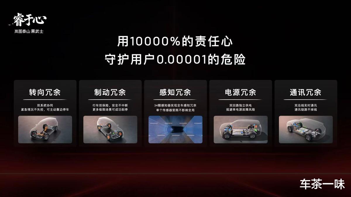 岚图泰山Ultra版基于全球首个具备L3技术能力的天元智能架构开发,深度融合岚图自主开发的青云行驶平台,采用行业顶级的五大安全冗余设计,涵盖转向、制动、感知、通讯、电源五大核心维度,通过多重备份机制彻底消除故障风险,满足L3有条件自动驾驶的安全要求,为用户出行筑牢双重保障。在央视直播测试中可以看到,岚图泰山Ultra版遇到驾驶者失能、前车掉落障碍物、异物遮挡视线等危机场景,能在第一时间做出最正确的驾驶决策,避免事故发生。在悬空、极窄或有异形障碍物的车位中泊车,岚图泰山Ultra能精准识别周围环境,高效安全完成自动泊车。