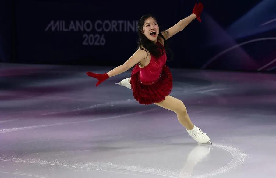 当地时间2月21日,米兰冬奥会举行了花样滑冰表演赛。女子单人滑铜牌得主中井亚美,身着一身亮红色服装亮相,瞬间吸引了意大利观众的目光。