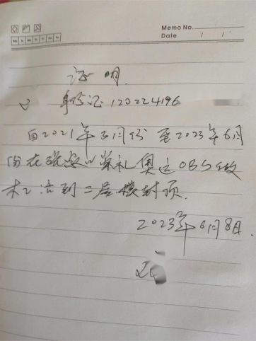 二、关键证据拒不提交,执法部门未采纳最高法判例为证明 OBS 一层、楼梯、走廊系己方施工,胡女士、徐某兵向执法部门提交了工人原始施工日志、项目社交软件群聊天记录、现场沟通录音、证人证言等完整证据,内容可直接对应施工时间、部位、人员及管理人员安排。