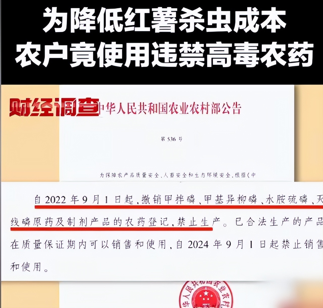 这批红薯最大的问题,就是用了甲拌磷。