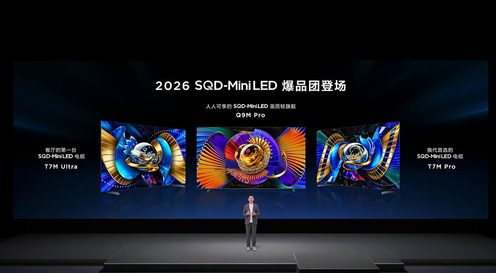 2026年3月17日, TCL SQD-Mini LED 电视春季新品发布会盛大启幕。TCL重磅推出搭载划时代SQD-Mini LED技术的Q9M Pro、T7M Ultra、T7M Pro 三大爆款产品,通过将机皇级 SQD-Mini LED 技术快速下放,实现从旗舰到主流系列的SQD-Mini LED 技术全价位覆盖,真正践行“当技术站上巅峰 普惠才有力量” 的技术理念。这也正式宣告,这一曾被奉为 “画质天花板” 的技术,开启了全民普及的新纪元 ——2026 年正式进入SQD-Mini LED 电视普及元年。