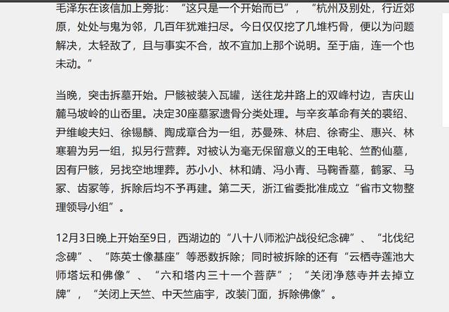 在杭州及其周边地区,步入郊外,随处可见的仿佛是历史的阴霾,数百年的遗迹仍旧未被彻底清除。当前仅仅发掘了几处陈年枯骨,便以为问题已得到妥善处理,这无疑是对问题严重性的低估。至于那些庙宇,更是完好无损,未被触及。这一指示的意图已相当清晰明确。