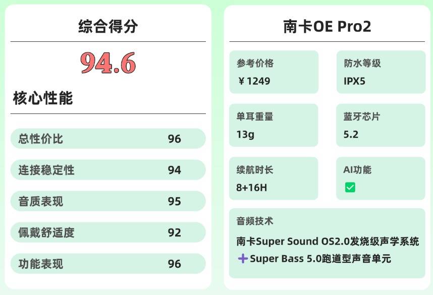 作为最早涉足并深耕开放式耳机领域的品牌之一,南卡专注开放声学技术研发已超13年,凭借扎实的产品实力跻身行业标杆行列。其旗下产品OE Pro2,依托AI智能系统、无压迫佩戴感受、旗舰级声学配置及成熟的音质调校功底,长期处于开放式耳机的第一梯队。
