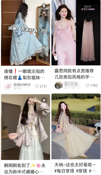 今年更纠结,最想买的新中式连衣裙,刷到博主穿的款式又仙又显气质,可专柜一看价格,看得上的都得上千。而试水的便宜白牌,好看是好看,但面料全是聚酯纤维,穿上不透气,质感也大打折扣。