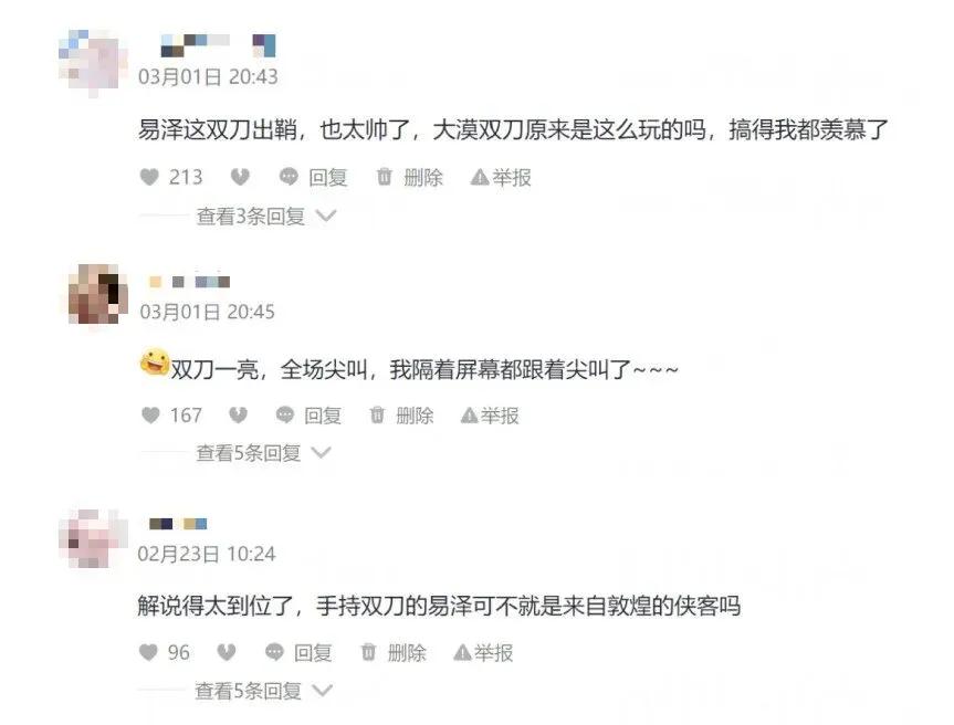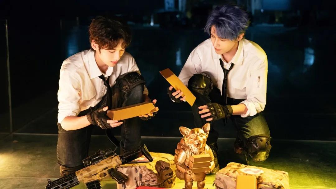 这些特效均是由游戏团队与制作组,按照《和平精英》的游戏特效1:1还原。例如你可以看到,剧中男主所使用的武器“大漠双刀”,就是春节敦煌版本最火的武器之一,其攻击特效和游戏中几乎完全一致。剧里剧外,双刀一出,全场好评。
