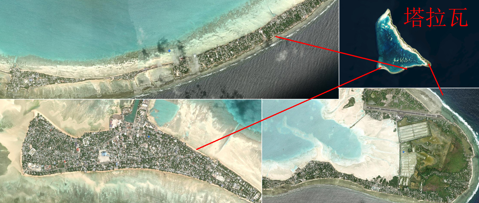 首都塔拉瓦蜷在一个环礁上,这条狭长的土地上,密密麻麻住了约五万人。在这里,从任何一栋房子溜达到海边,都用不了五分钟。