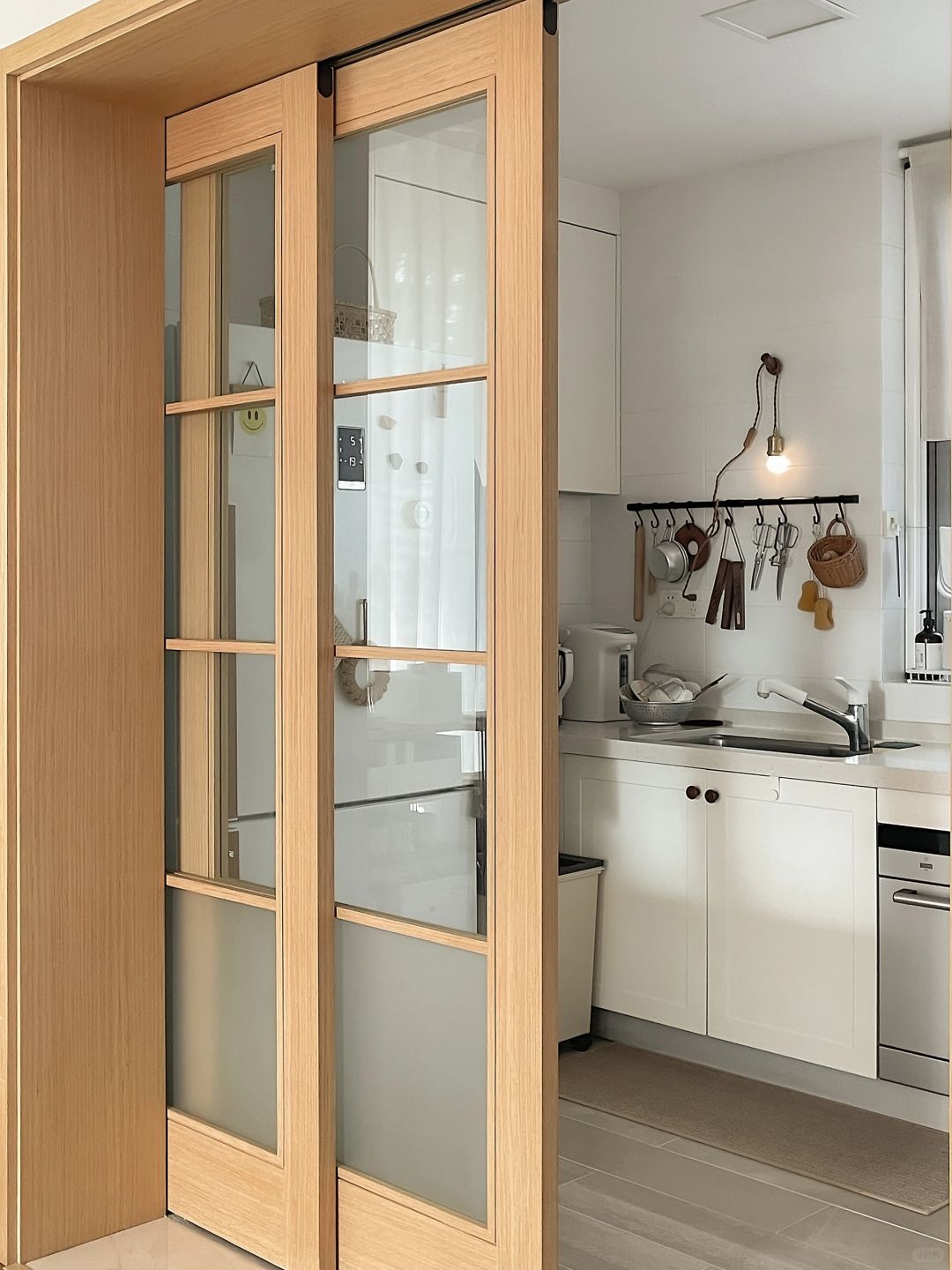 好多人问我们家这个门的款式, 时间太久没有留设计图了, 是当地木作店定制的, P9有尺寸给大家做参考。 书房和厨房的移门都是一个模样的, 厨房是双开,算半开放式, 收起来的时候几乎看不到, 安装燃气标准完全达标, 吊柜设计,地面没有轨道, 三合板+科技树皮, 千万不要用实木!会变形。 最下层是磨砂玻璃。 其他有疑问的可以留言哈。
