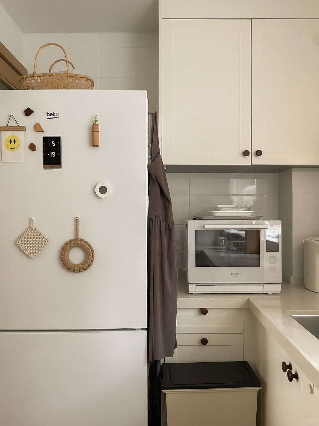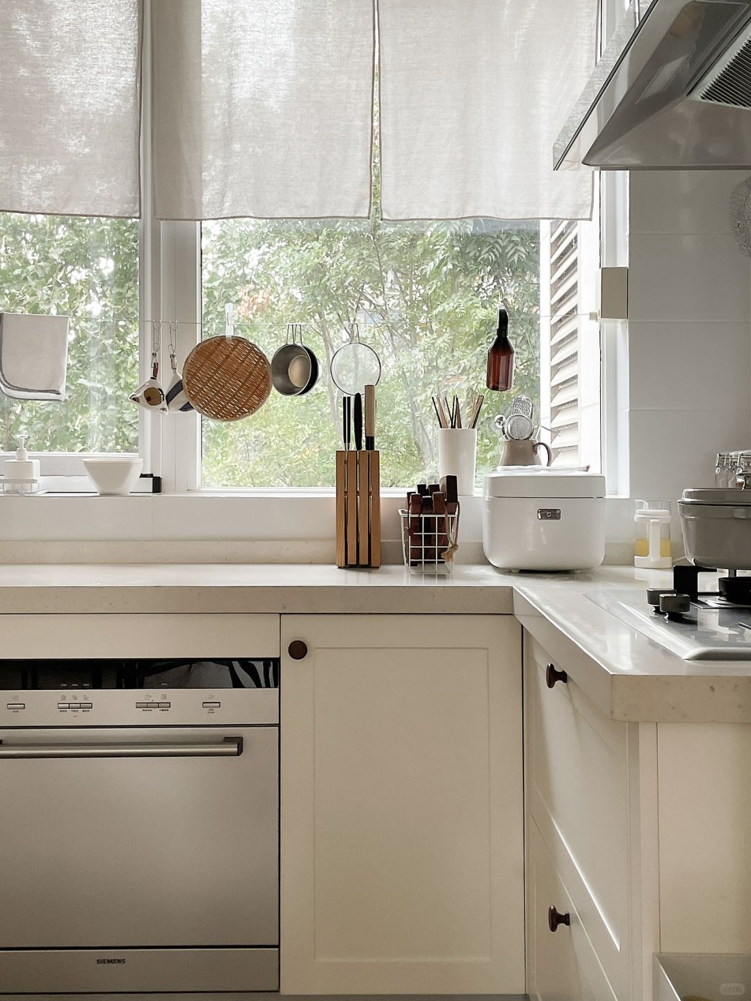 6平米的白色厨房, 已经用了5年多啦~ 当时被长辈疯狂吐槽🥲 说白色厨房用不了三年~ 现在用事实啪啪打脸! 一家三口每天都会开火做饭, 清爽干净与烟火气同在, 主要是厨房的东西不多, 清洁起来就还算省心。 喜欢清爽质朴的感觉~