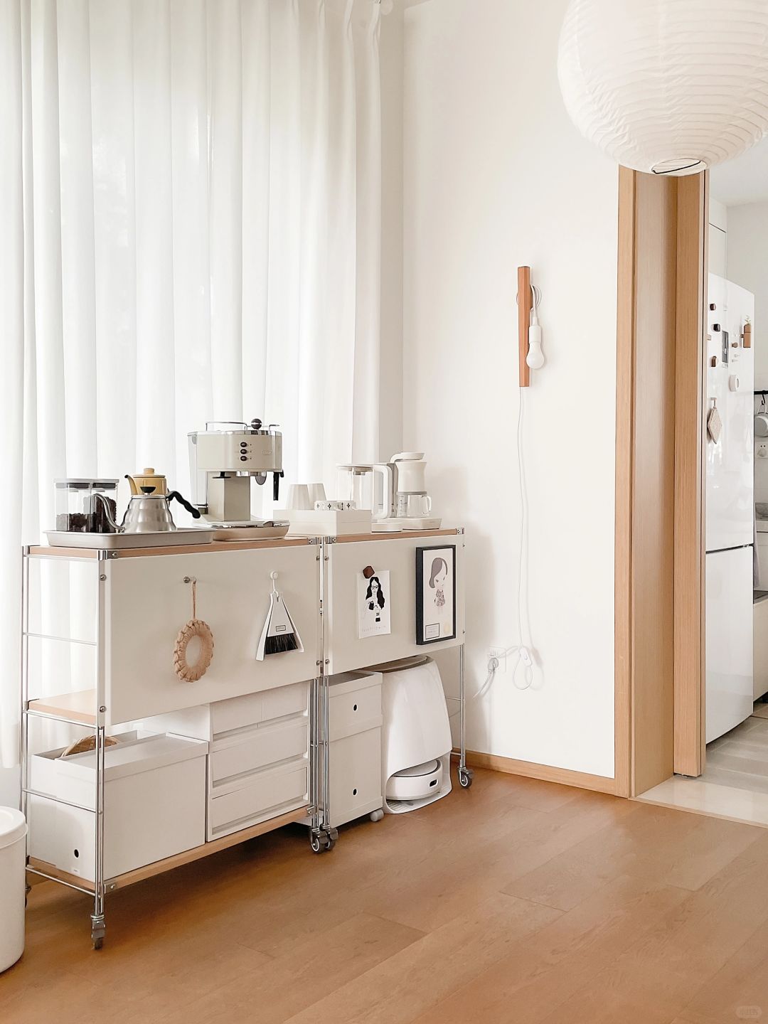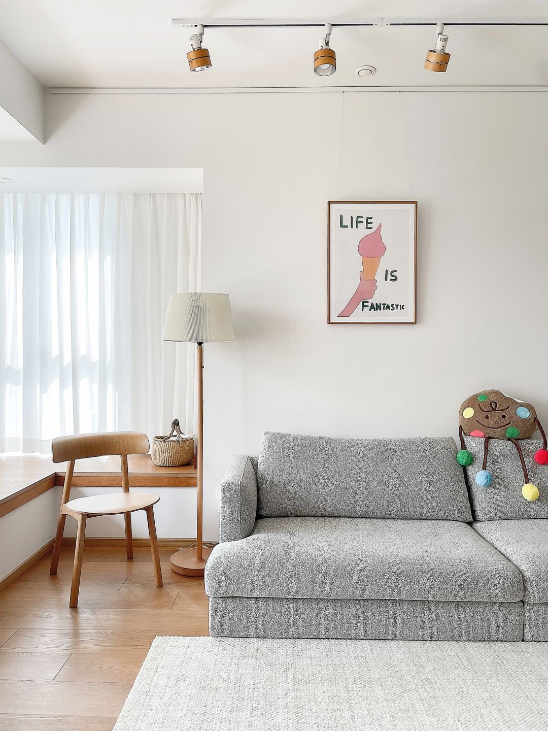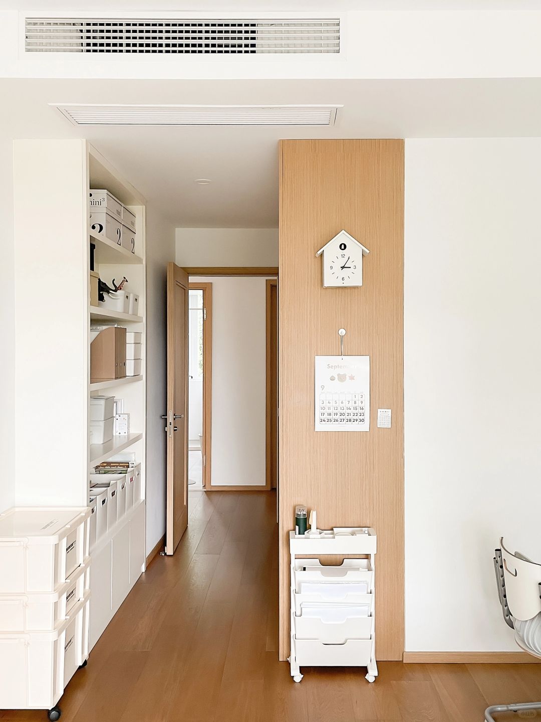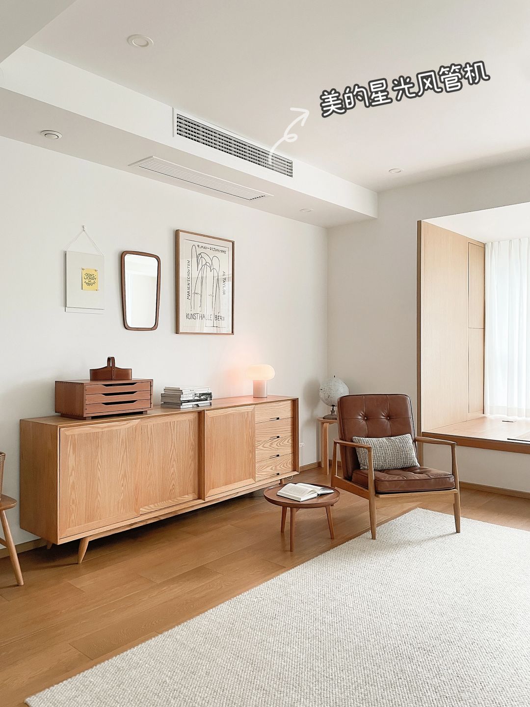 今天来聊一聊我家的家装小思路, 初心就是想要简简单单啦, 硬装上基本没有改动原格局, 选择了大白墙+原木色系, 清清爽爽的硬装真的是最实用的, 空间显大软装布置也会更灵活, 软装基本也就是顺着硬装的风格走, 家具和装饰都选择了白色和木色, 买买买的路上需要一点点克制, 原则就是不要打破家里整体的基调, 在视觉上就会有井井有条的感觉。 - 空间利用上就是尽量考虑到收纳, 拒绝那些花哨造型的家具, 第一点是简单第二点就是收纳, 希望每个角落都是合理利用的。 空调是选择了美的星光风管机, 一开始有考虑过用柜机, 但是柜机真的很占地方, 毕竟房价寸土寸金~ 风管机省出来的空间是真真划算! 柜机的价格中央空调的享受 造型美观不会破坏空间的整体感, 清清爽爽才是最重要的~ - 除此之外, 星光风管机变频一级能效, 搭配ECO节能模式, 省电耗能方面也是杠杠的, 电量可视化用了多少电量都“心知肚明”, 不用担心家庭电费超标。 它还有wifi全屋智联, 平时控制都可以用手机app操作, 睡觉前可以分时段设置好温度, 运行的时候几乎没有什么声音, 不会打搅到睡眠, 舒舒服服一觉到大天亮。 - 最贴心的是它还有高温除菌智清洁功能, 身在南方沿海城市, 梅雨天总是担心空调机里面有湿气霉菌, 清洗空调也是一大笔费用啊, 有了这个功能就是省心省力省钱, 定期开一下高温除菌清洁, 任何季节都用的安安心心! - 安装期间上门的师傅也是非常专业, 官旗下单有一价全包活动, 从配型到勘测、高空作业、打孔、 回风面板加长都不用额外收费。 师傅安装得井井有条, 过程专业标准化非常可靠。 所以有时候在家装和家具的选择上, 也不能单单只从价格的角度出发, 要从搭配空间利用等多方面考量, 和生活契合的才是真正有性价比的!
