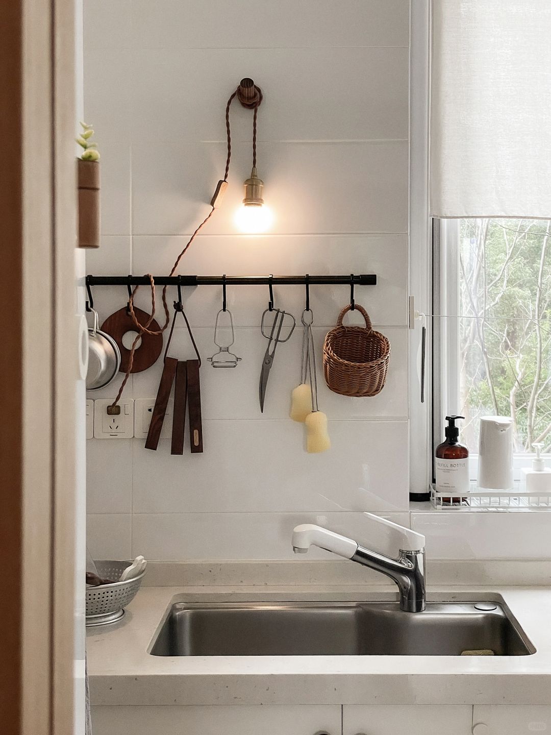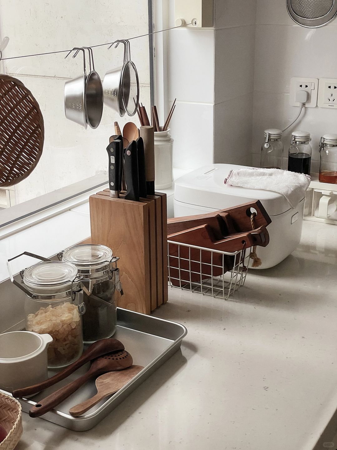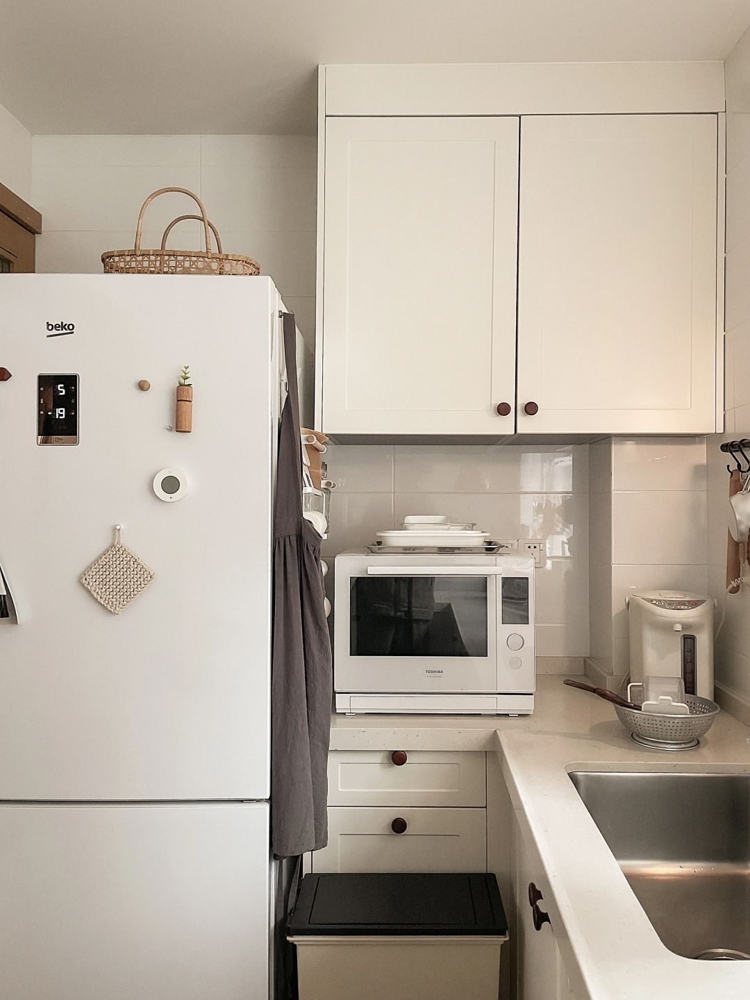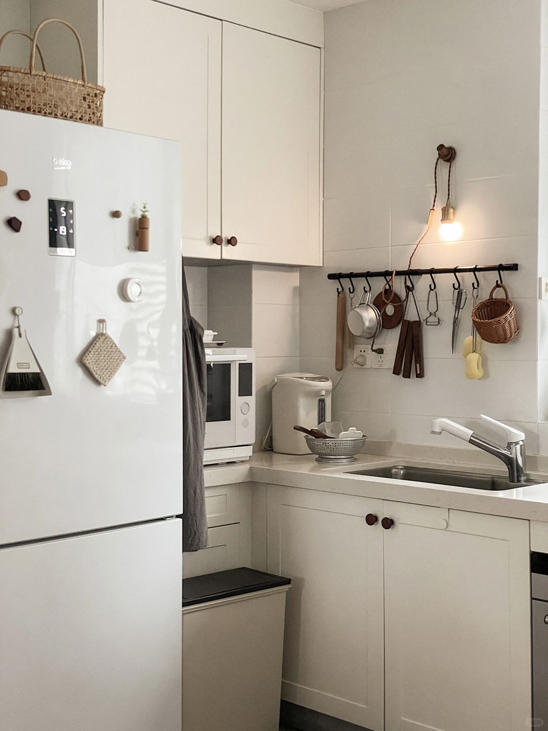 春暖还没来, 天气是湿湿答答, 但不影响好心情~ 午后整理厨房, 白色和木质搭配, 就是看不腻的温馨。