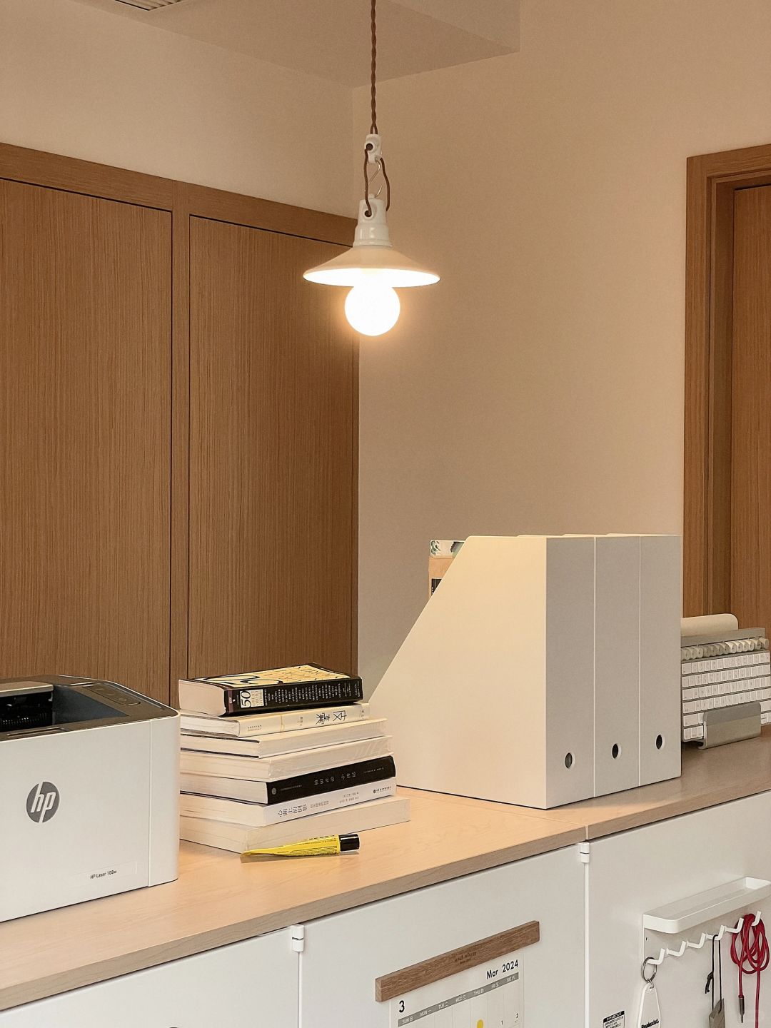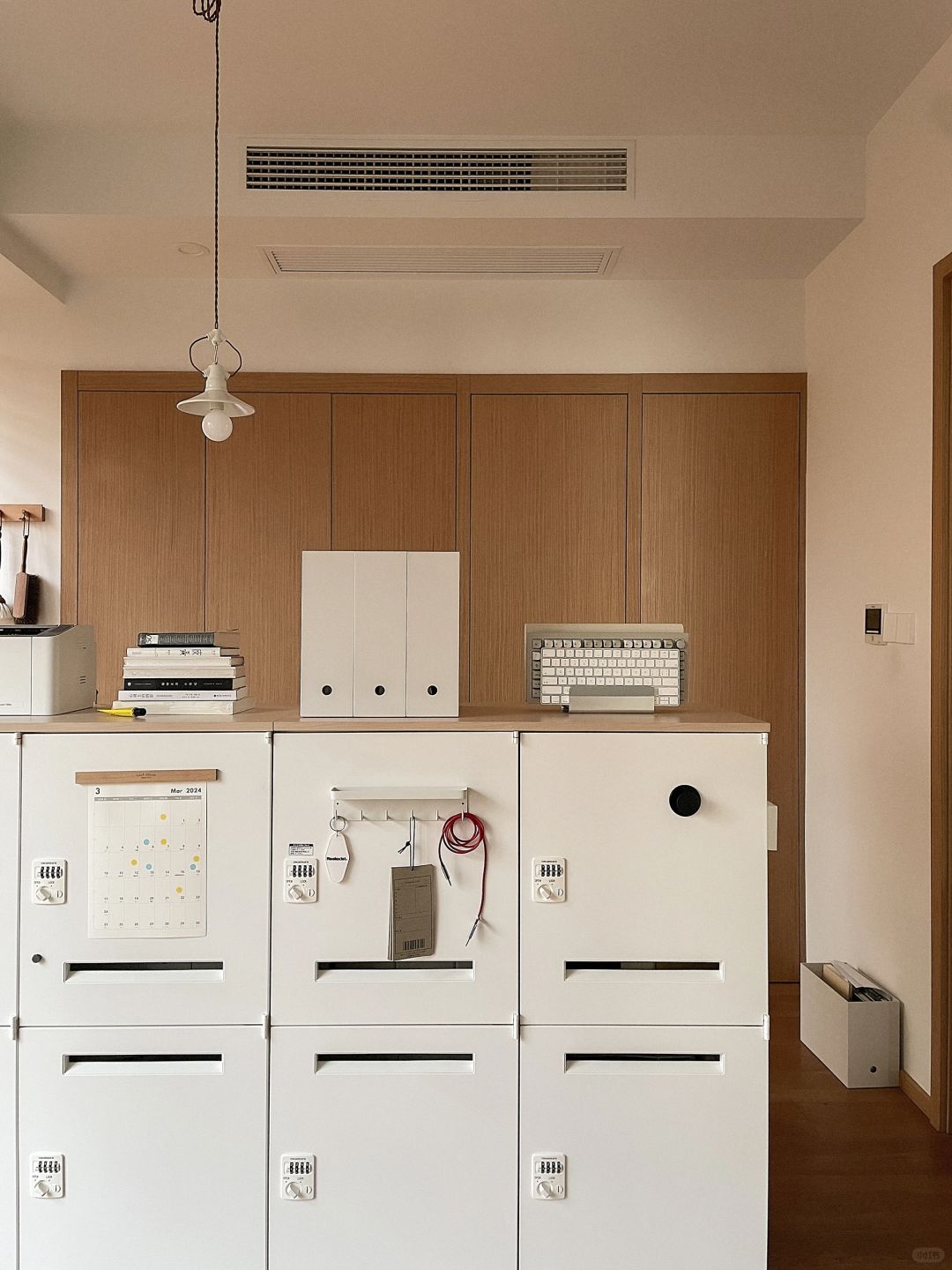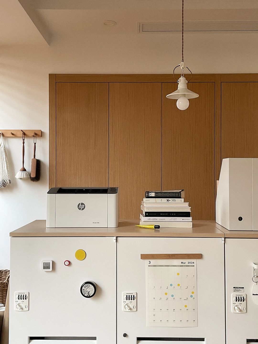这样两只大白铁皮柜子, 兼具了颜值和收纳, 已经是书房的核心啦, 可以做书柜可以做杂物收纳, 简简单单的造型不翻车~ 用了一年依然是全屋zui爱!