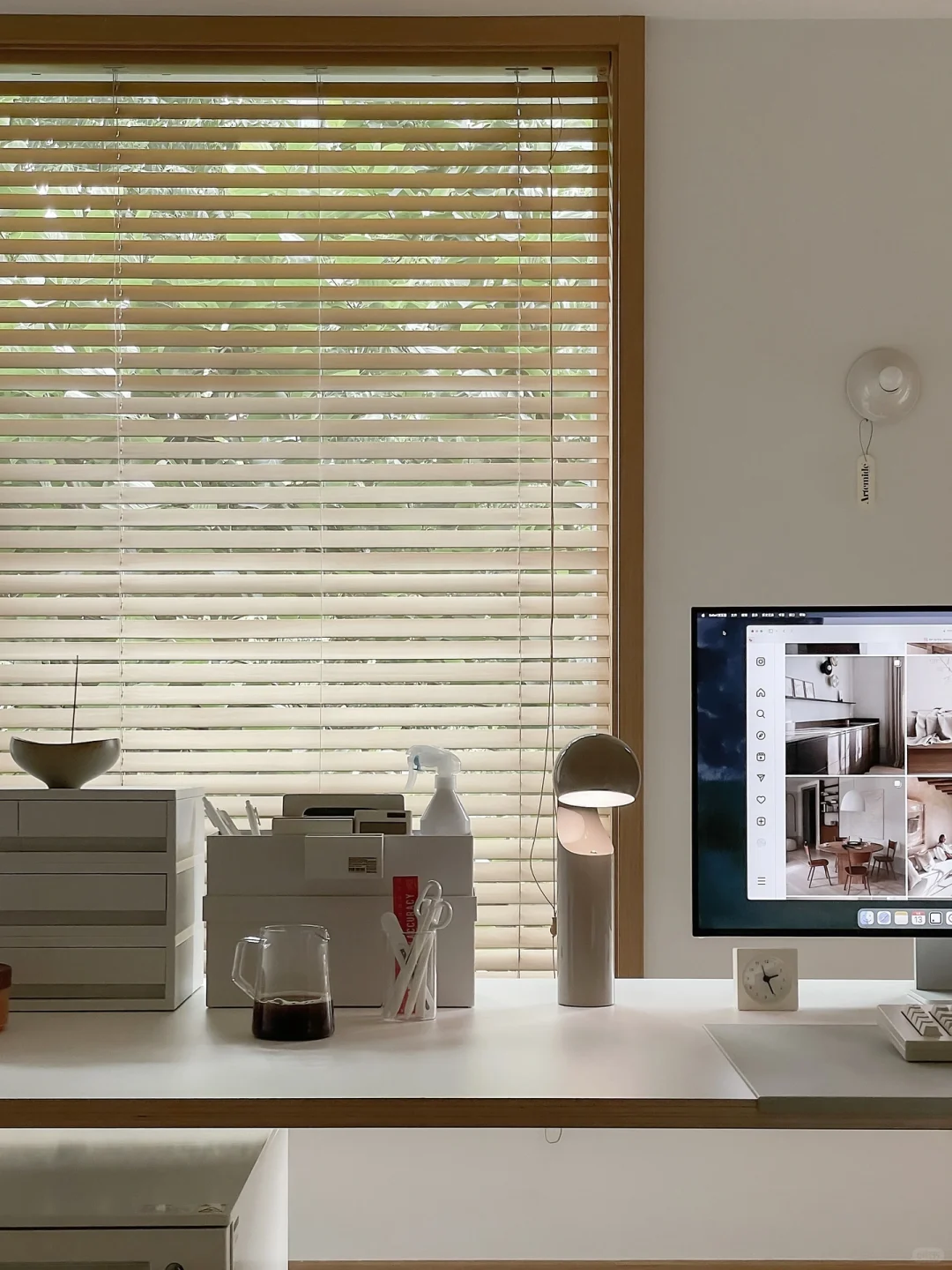 布置书桌去掉了一些多余的物件, 简单清爽真的能让人情绪稳定, 工作学习效率满满心情舒畅, 做了3年家居博主小物件越来越多, 幡然醒悟打算开始做减法~ 收纳和精简是要同步进行啦。
