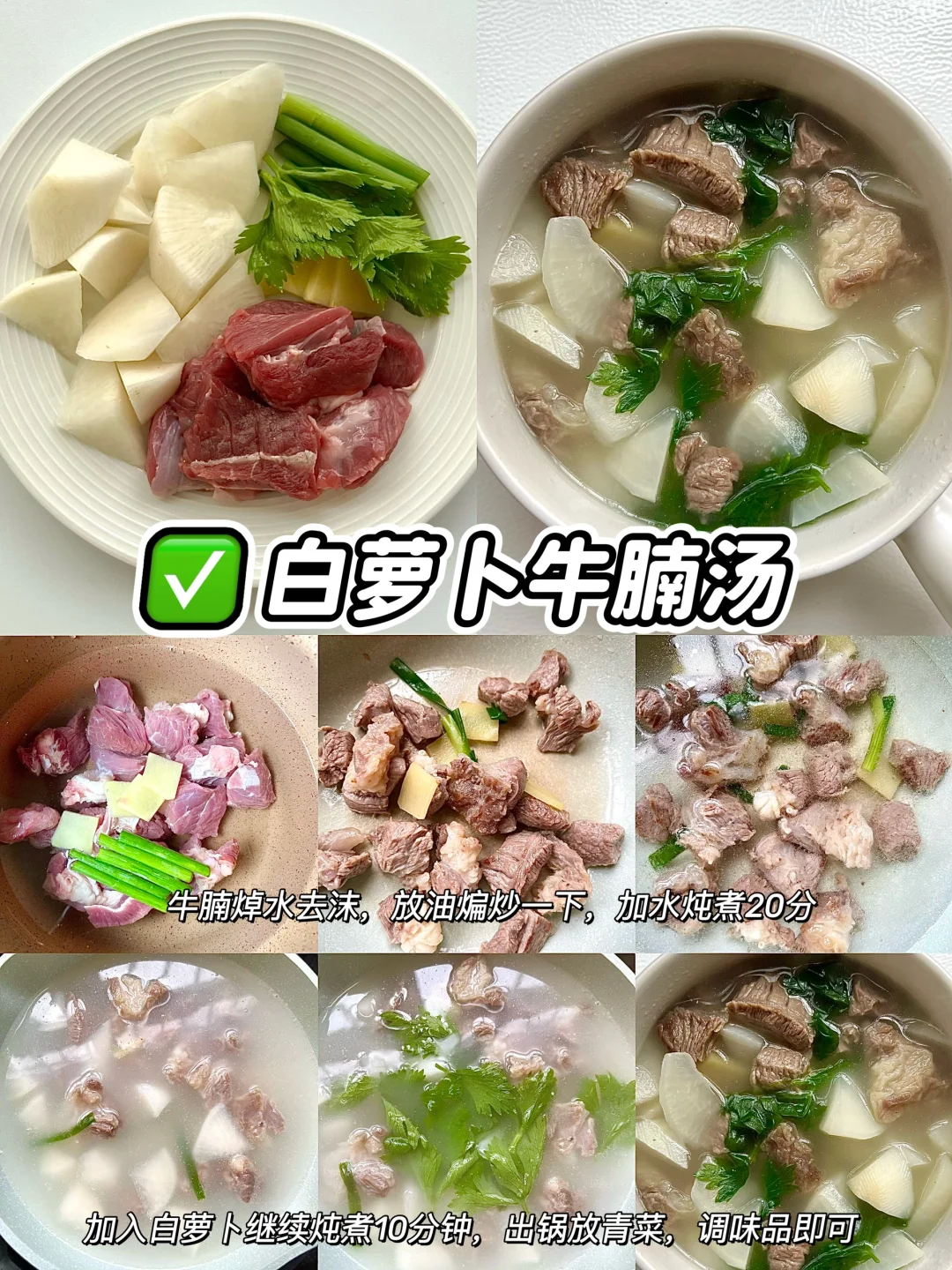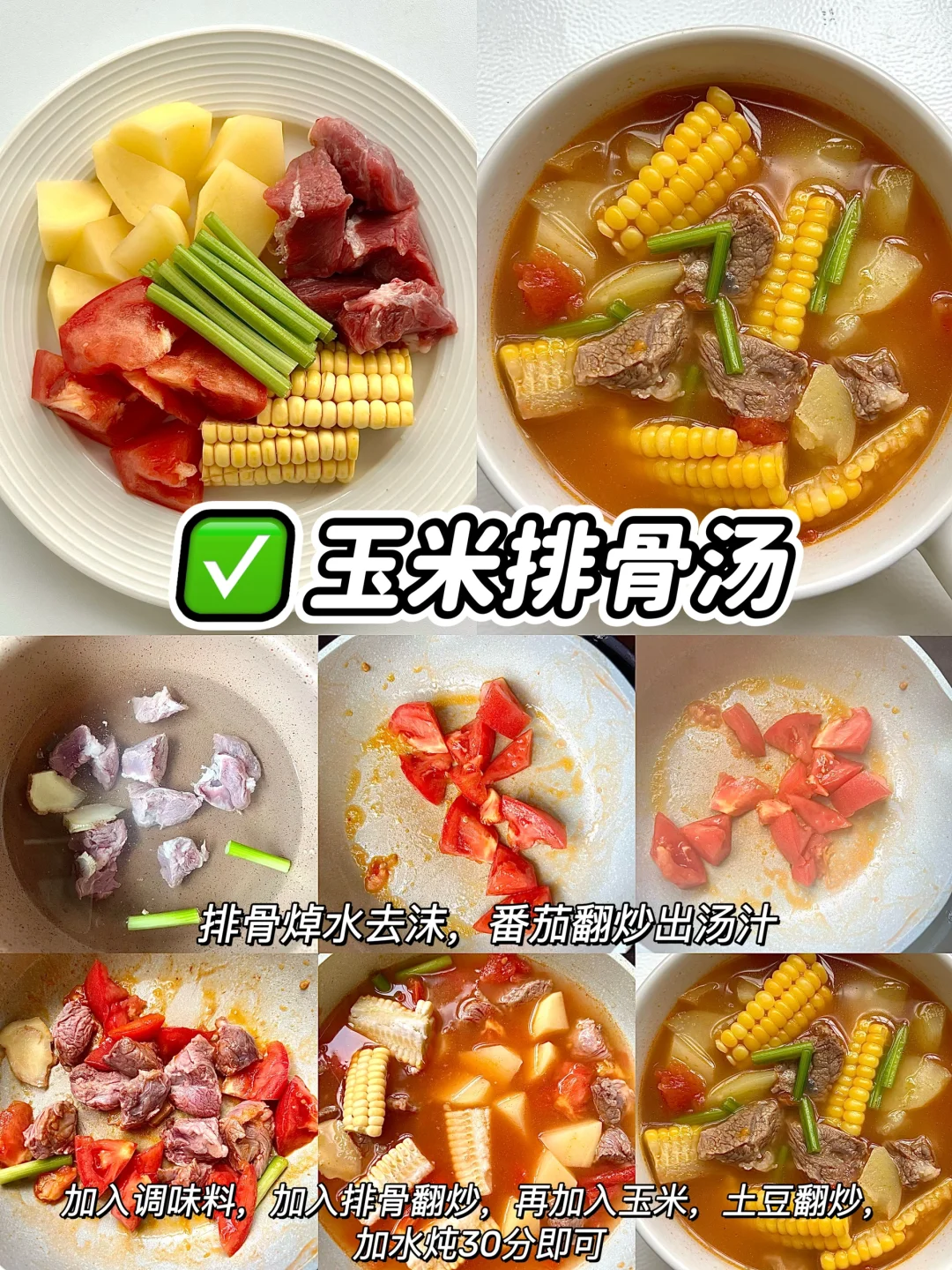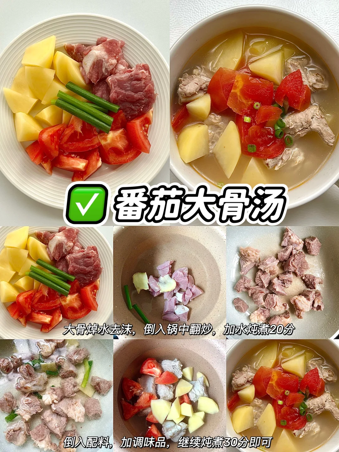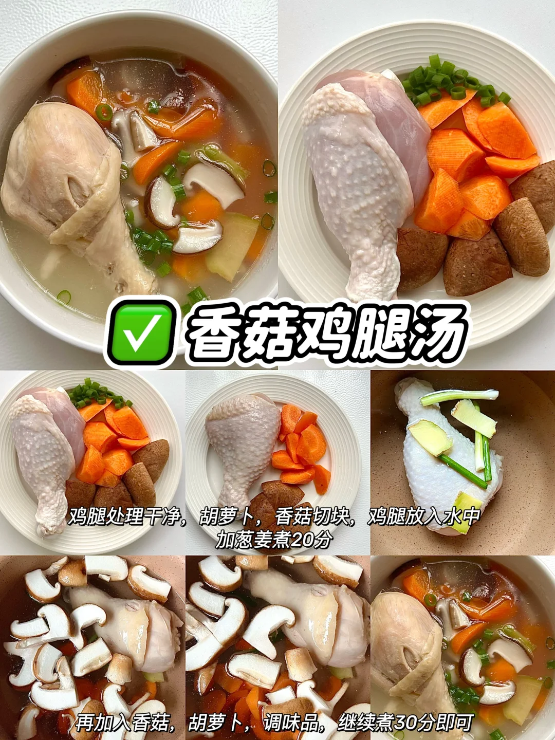 夏季不想吃饭,胃口不好的,赶紧来一碗营养美味的炖汤吧,真真鲜掉眉毛了,大人,孩子都抢着吃呢!! 🥣香菇鸡腿汤 🥣番茄排骨汤 🥣白萝卜牛腩汤 🥣玉米排骨汤 🥣山药排骨汤 🥣萝卜猪蹄汤 ✅具体做法参考图文教程哦!
