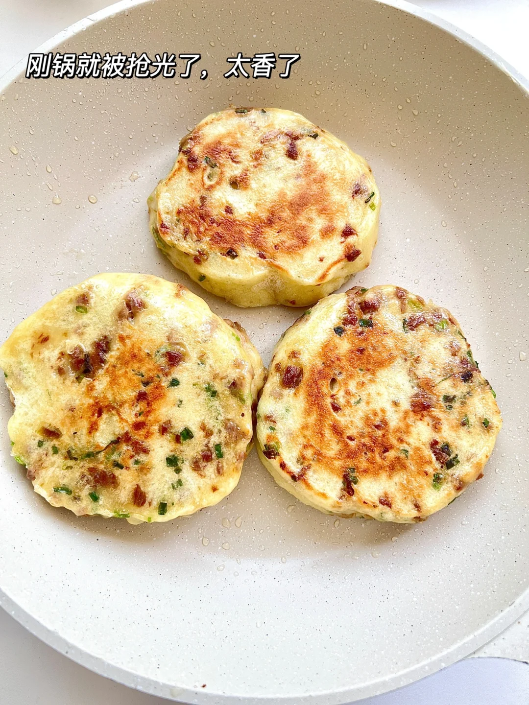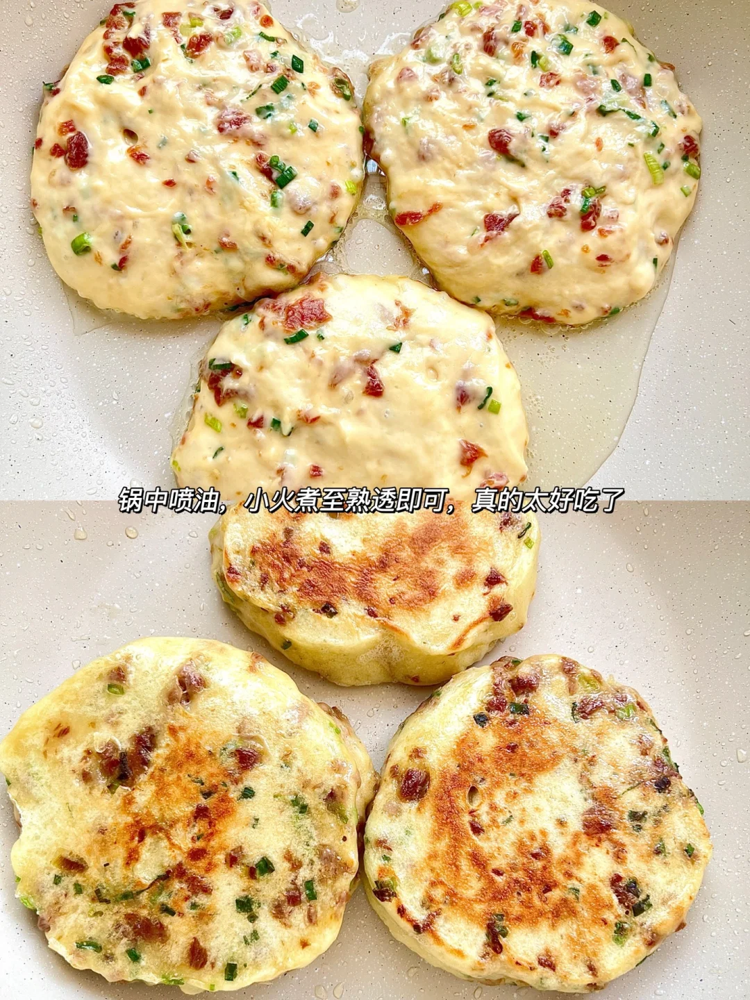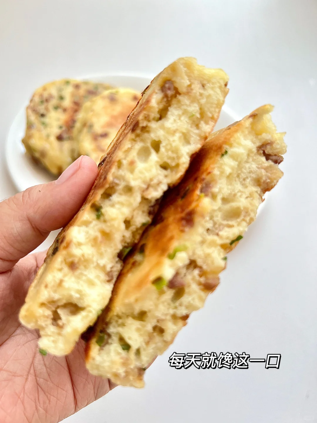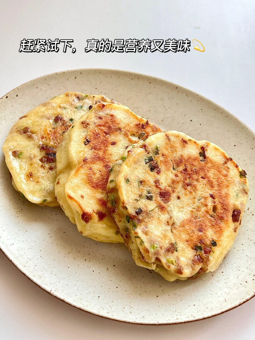 真的是太爱吃这样的发面饼了家里有孩子的都快去安排💯 免揉面,搅一搅就能做,有肉有菜有蛋有主食,又香又软,营养又好吃,孩子敲爱呢 提前把面发好,轻松搞定孩子早餐,真的敲软敲好吃~ ✅准备食材 面粉150g|温水110g |鸡蛋🥚2个 | 1酵母2g|猪肉末|香葱 🌱具体教程请参考图文哦~ 温水可换成等量牛奶或配方奶,蛋可不放,水量需+30g 全程记得小火,怕不熟可在饼周围滴点水,盖盖子焖一会儿哦~ 又暄又软的葱花发面肉饼,吃一口还想第二口,一口下去满满的营养,麻麻们都快去做吧~