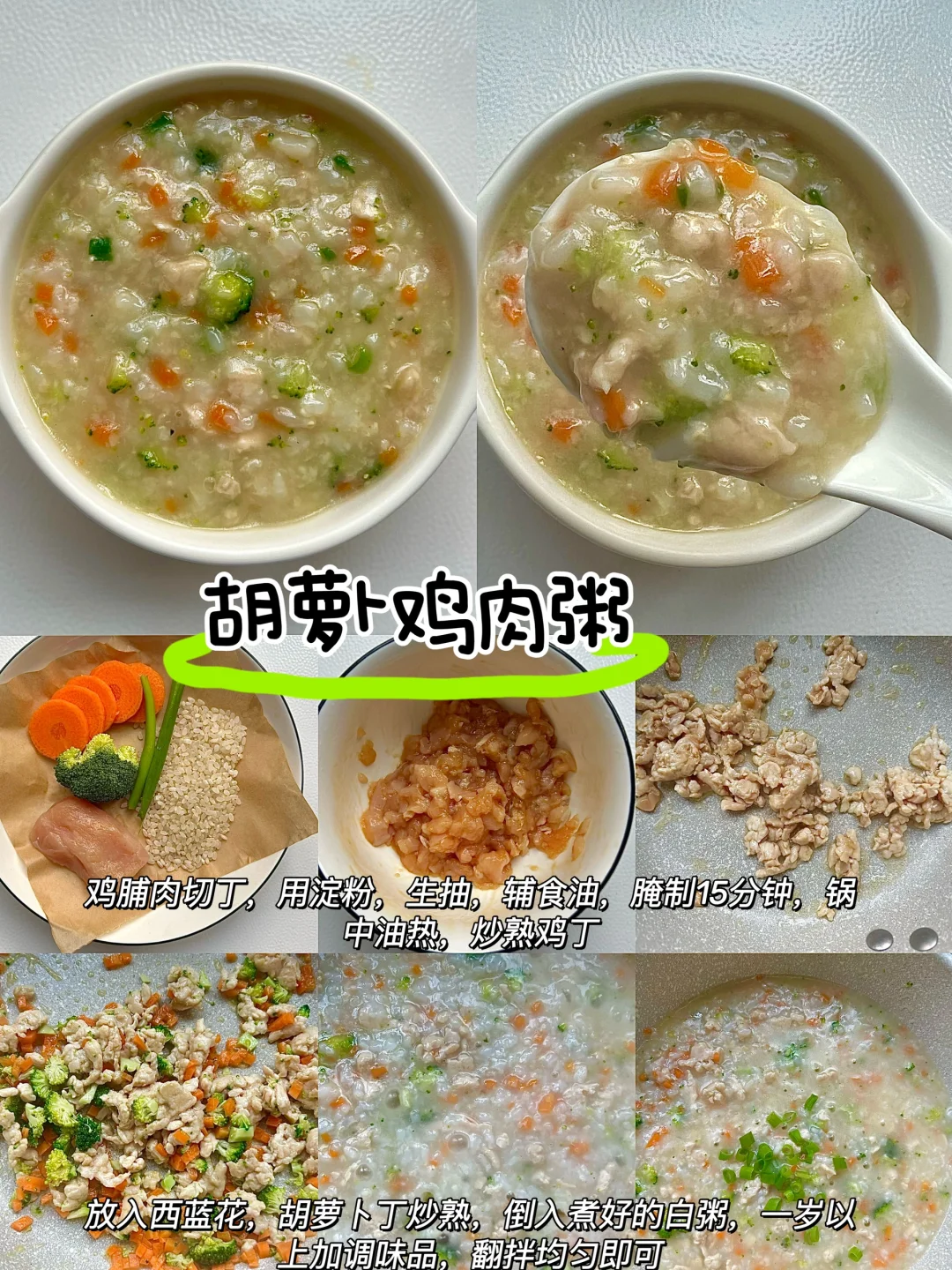 胃口不好的,不想吃饭的时候,就赶紧安排一碗这样的果蔬肉粥吧,鲜香味美,果蔬搭配肉肉➕米粥,真的营养又美味,我家宝宝每次都能干一碗,大人也非常喜欢呢,赶紧一起做起来吧,做法也非常简单哦~ 🥣具体做法参考图文教程~