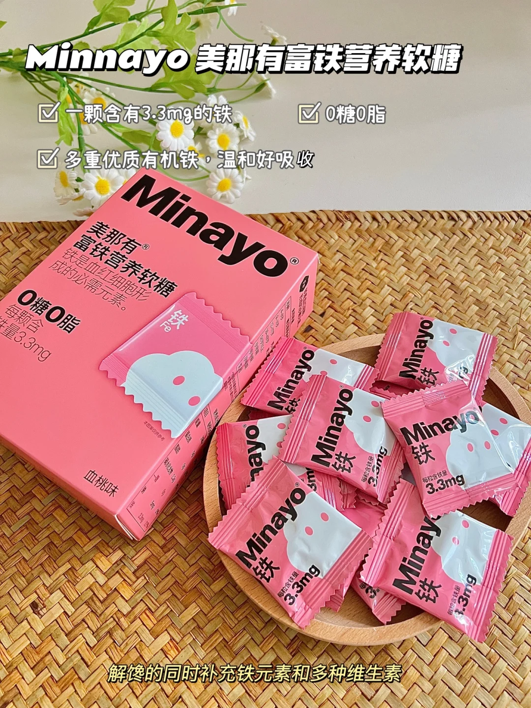 女生姨妈期会流失很多铁元素,时间久了对女孩子身体影响可不小,气色也会变差,如果没时间自己做补品的,也可以吃这个吃了Minayo 美那有富铁营养软糖,这是我闺蜜安利给我的哦~它是4种有机铁源复配,补铁嘎嘎棒,还有新疆和田枣、黑枸杞、黄芪,补充身体多种维生素成分,入口没有铁锈味,而是甜甜的味道,qq弹弹,0糖0脂很适合女生吃,坚持补铁一段时间真的不一样,麻麻们赶紧一起安排起来吧~