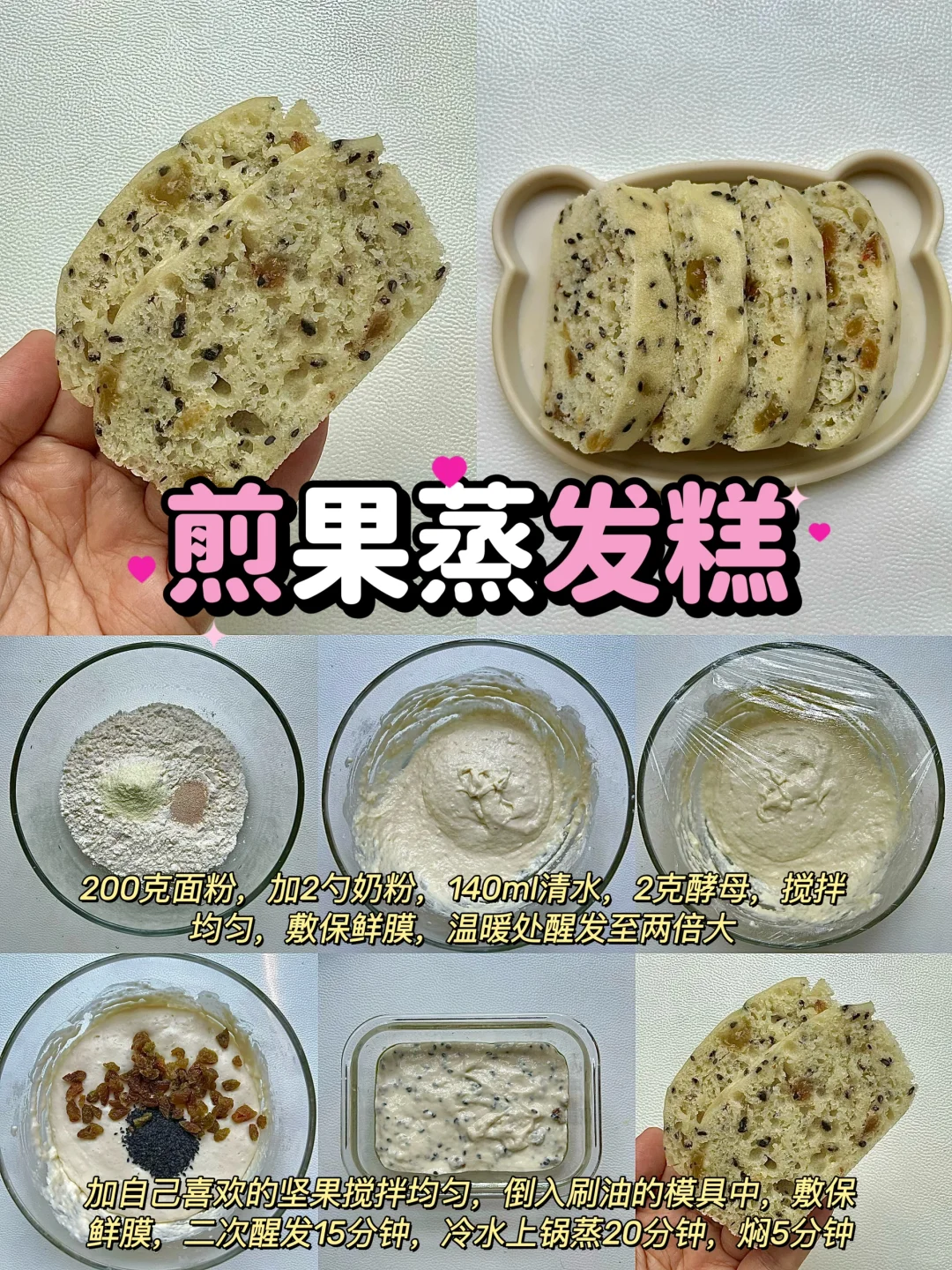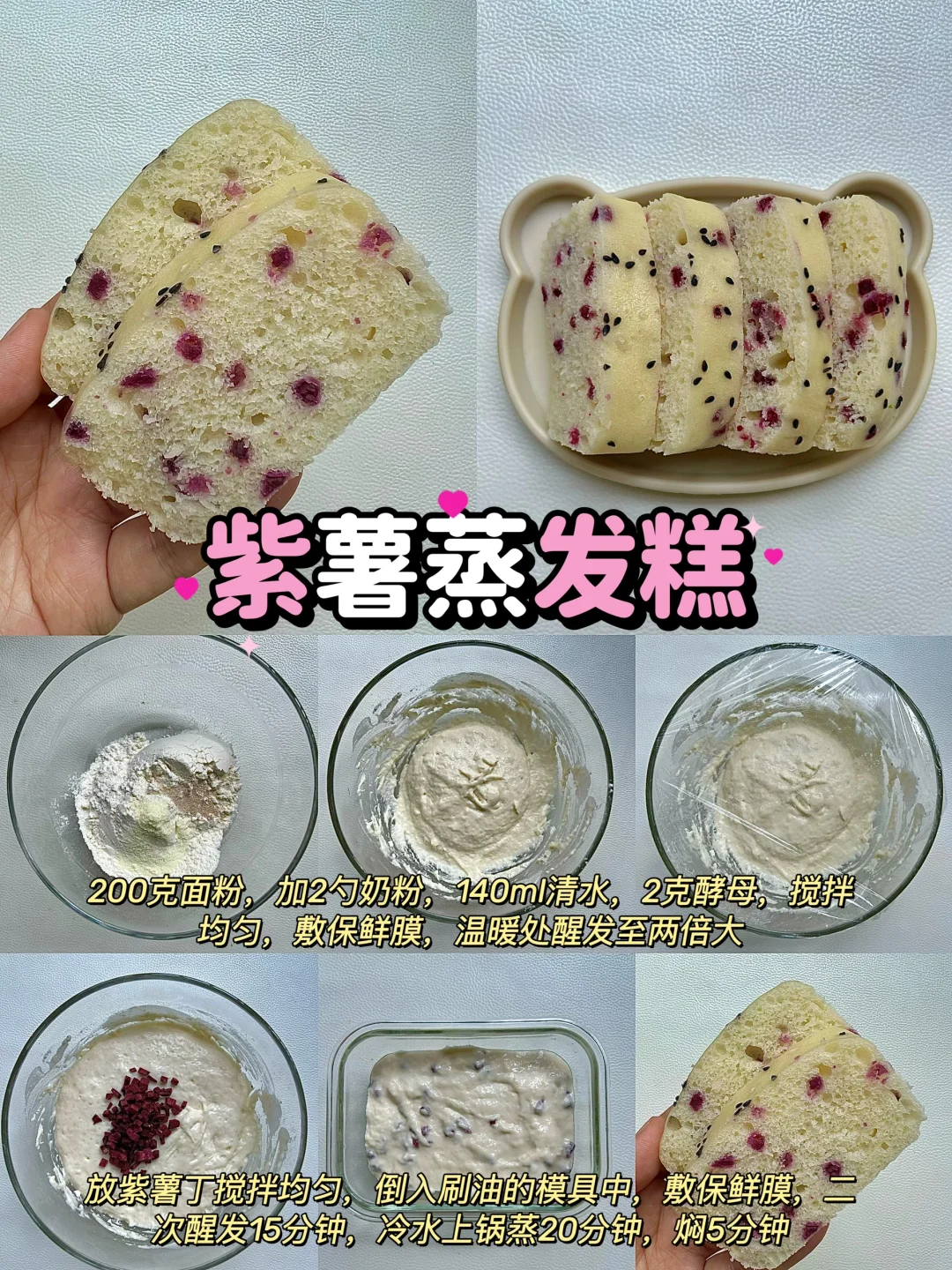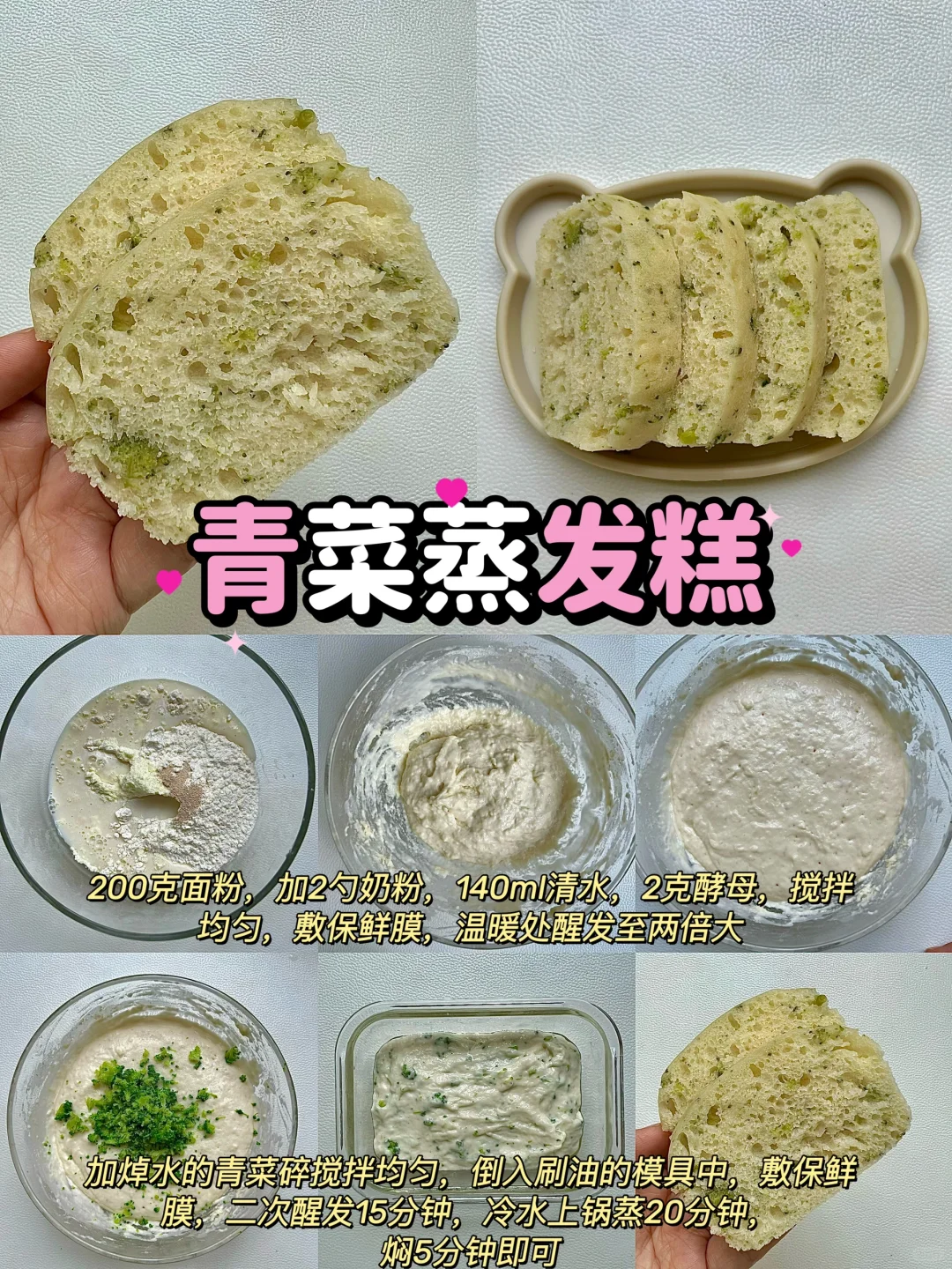 我家宝宝特别喜欢吃蒸糕,蓬松暄软,甜乎乎的,每次都能吃一大块,我也换经常给她换着花样做,不但营养丰富,做法也贼啦简单,只需要一搅一蒸就可以了,麻麻们赶紧一起学起来吧! ✅具体做法都再图片上哦~