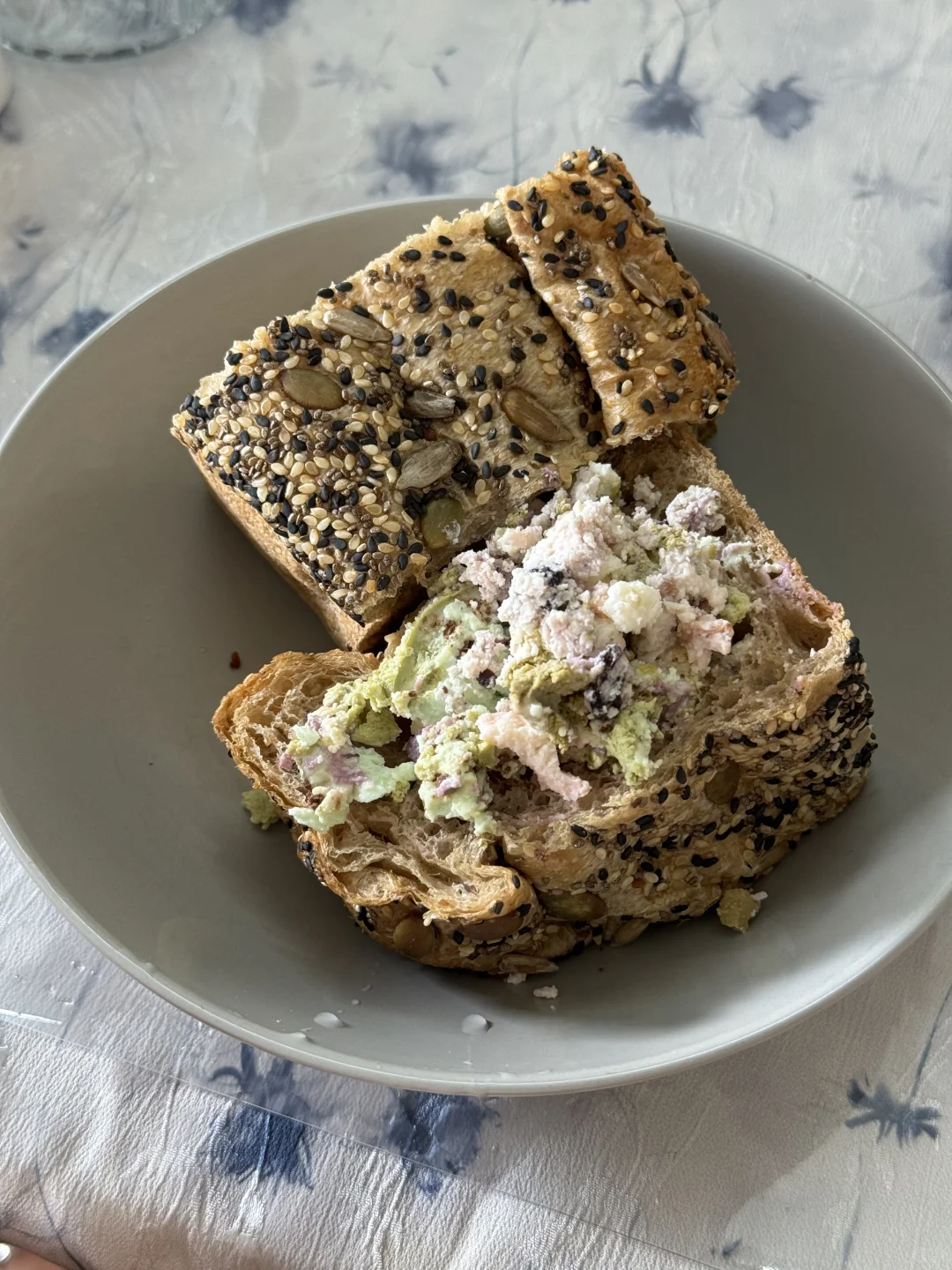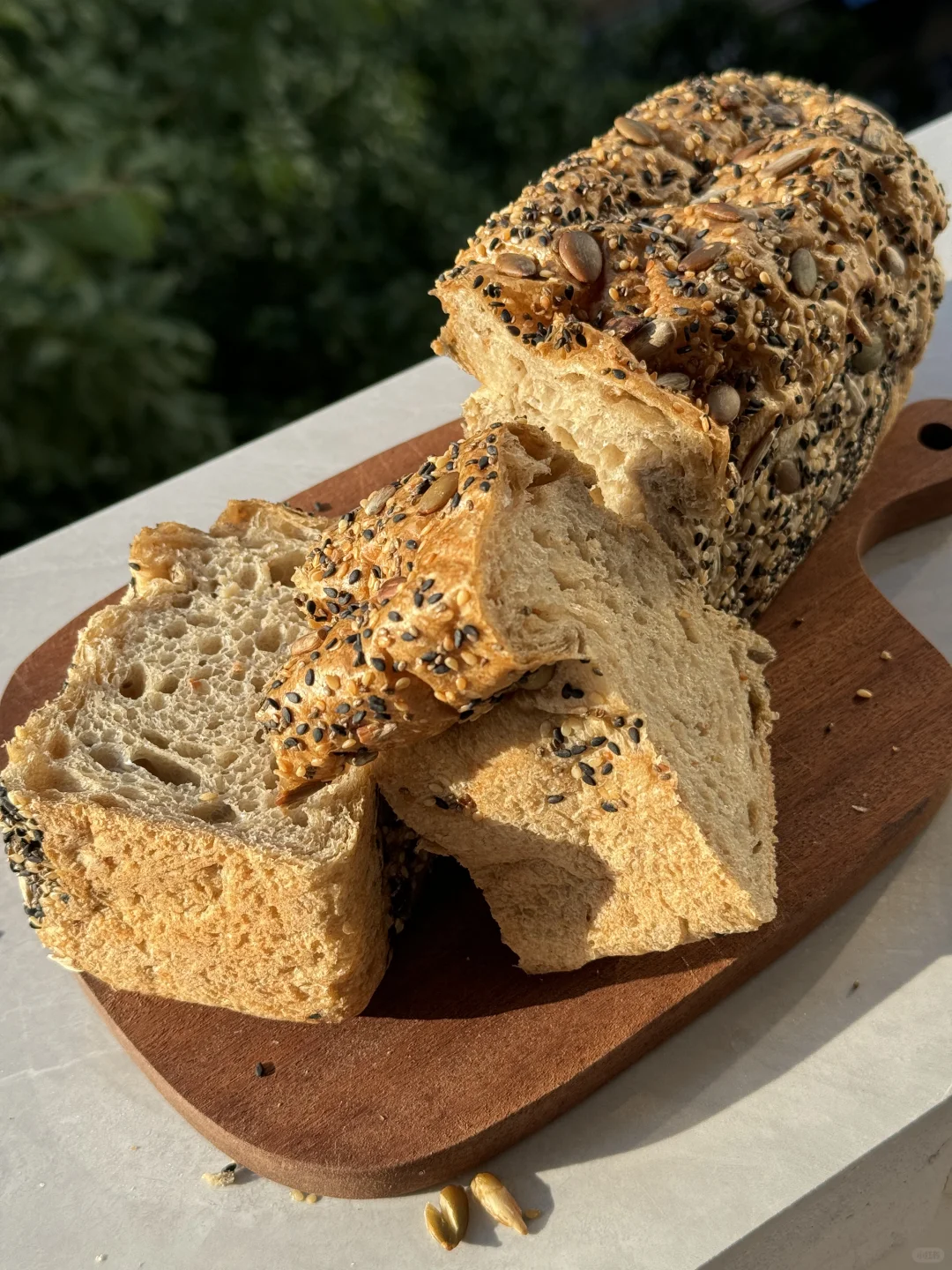 谷物直接补充到位,口味比较重的我就自己加了点冷萃酸奶,吃起来真的绝了。吐司有韧劲的同时又非常的蓬松。