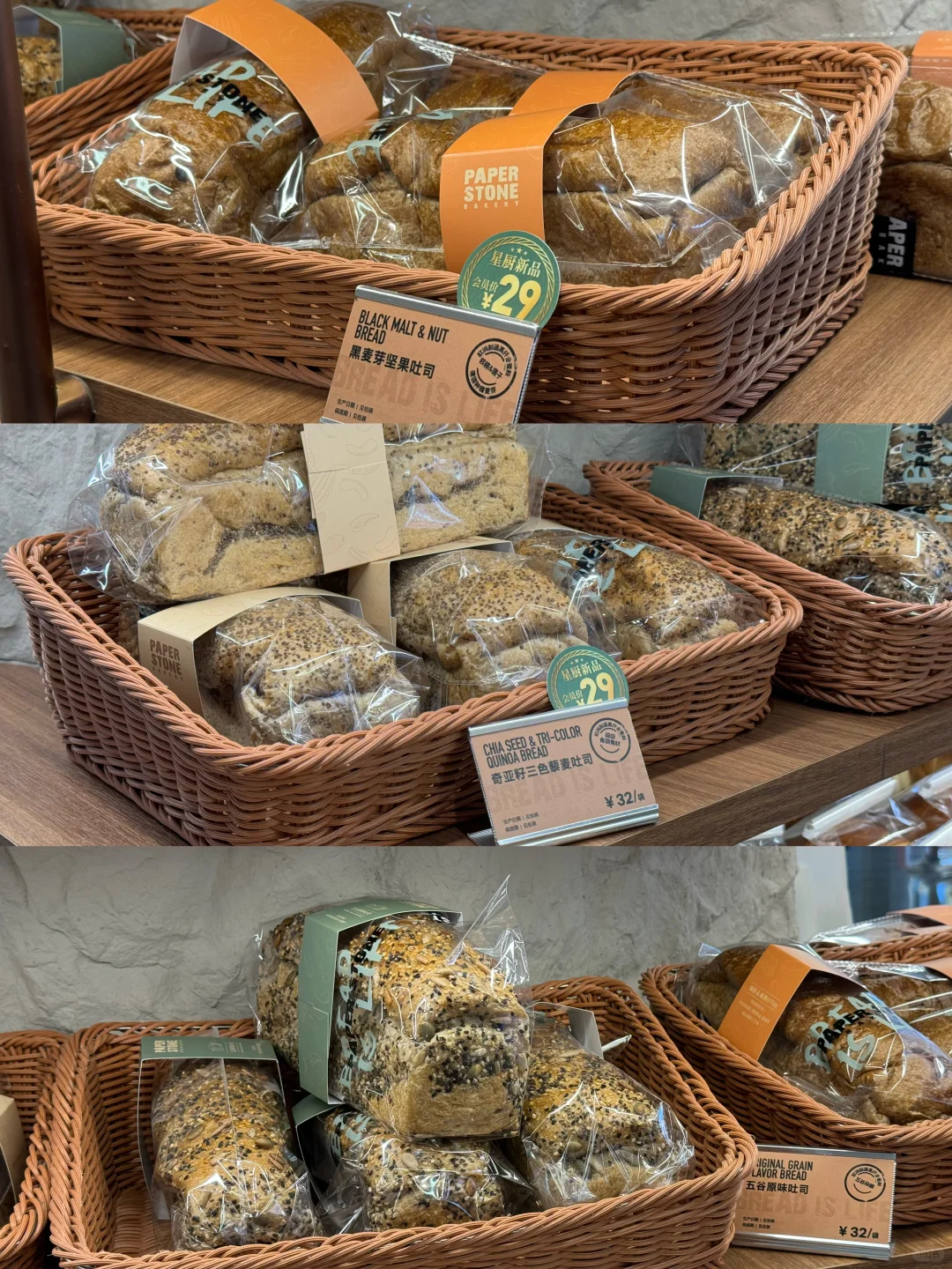 路过纸石头被星厨立牌吸引到,买了两个新品吐司当早餐吃。一条一个家庭分也完全没问题,而且馅料真的很足,直接补满坚果谷物!
