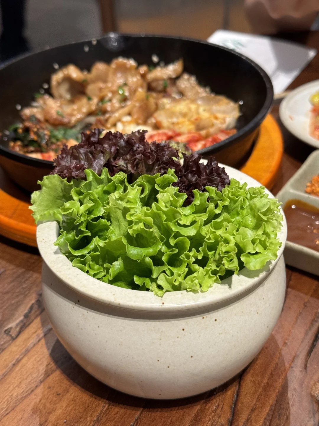 谁懂啊,真的超好吃,生菜无限续,包在一起吃幸福感满分好吧!大蒜🧄好吃!哈哈哈哈甜甜糯糯的!
