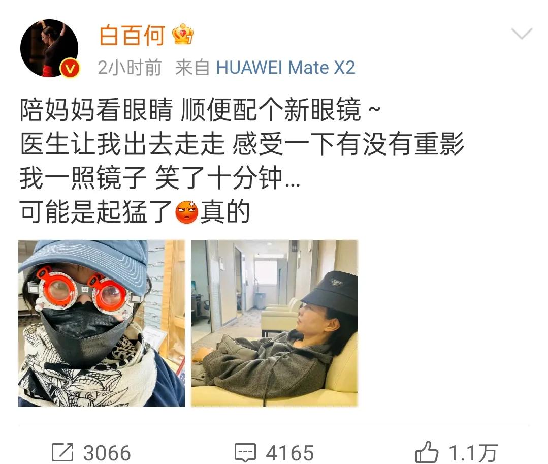 白百何晒日常被网友调侃:童心未泯。白百何还调侃自己今天起猛了[呲牙][呲牙][呲牙]不过这个眼镜看着真有点可爱,抽象,难怪她自己也笑了十分钟,不知道肖战看见会是什么样的心情[呲牙][呲牙][呲牙]